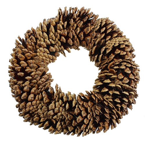 Du kan lage en herlig julekrans fra denne grankransen veldig raskt! Kransbunnen består av en halmkrans som noen grankegler er bundet med wire. Disse kjeglene er tørket og spesiallakkert slik at kransen får en fin, elegant glans. Granskjeglene stikker litt ut fra kjernen og gir også nok støtte til annet dekorativt materiale som grangrønt, julebånd eller figurer på tråden, som du kan feste der.I tillegg er det fremdeles nok plass mellom de enkelte kjeglene til å sette dekor på ledningen i halmkransen. I tillegg ble undersiden av tappene kuttet ut slik at den kan plasseres på en hvilken som helst overflate eller henges på hvilken som helst vegg eller dør. Selvfølgelig kan du ikke bare lage en adventskrans med den, men også designe en vinter- eller høstkrans, som blir et blikkfang på kort tid i løpet av disse sesongene.