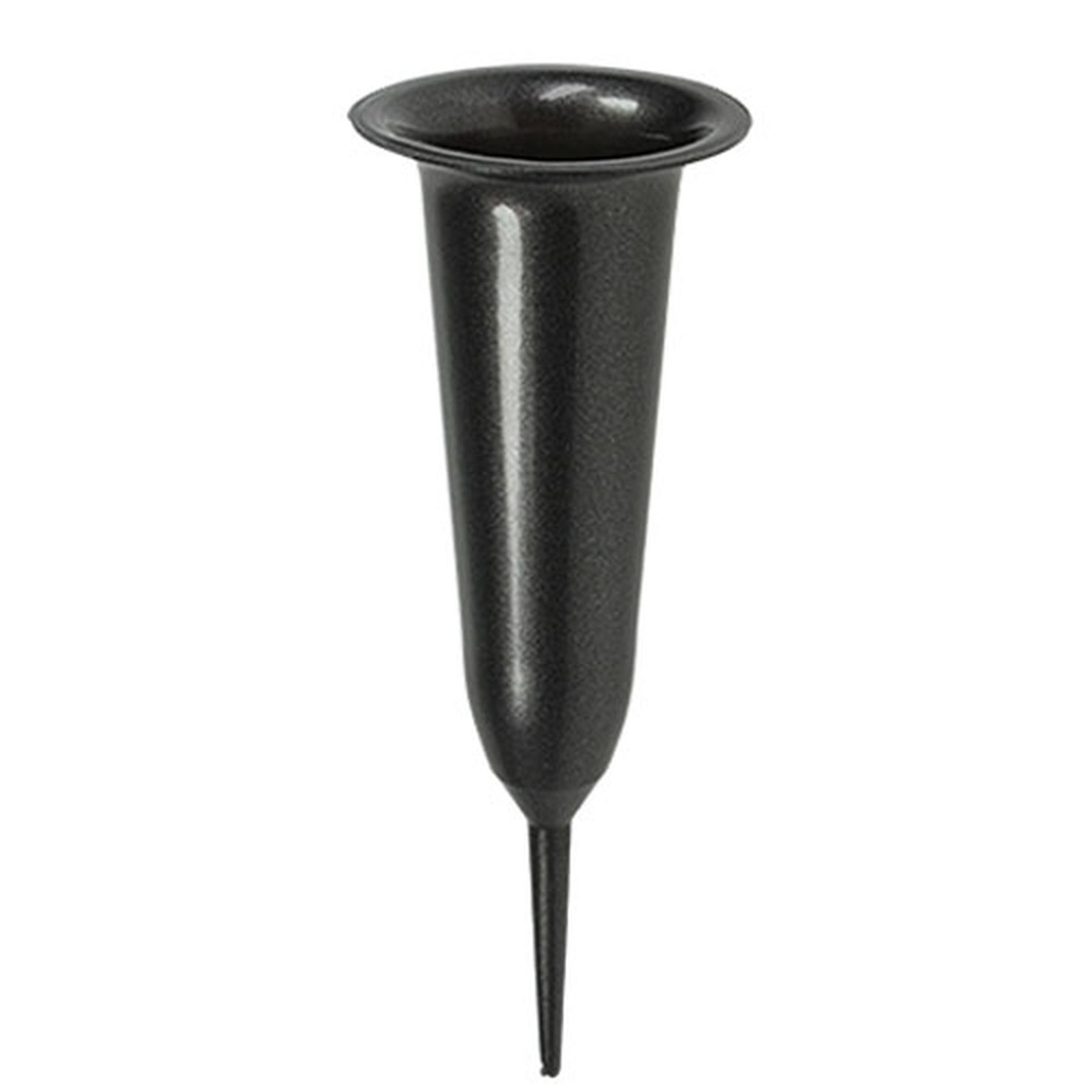 Gravvasen av plast er laget av glitrende antrasitt og er omtrent 28,5 centimeter stor. Den omtrent 8,5 cm lange spissen kan lett festes i bakken. Selve vasen er omtrent 20 centimeter dyp og har en utvendig diameter på ca. 10 centimeter og en innvendig diameter på 6,5 centimeter, diameteren på bunnen er ca. 4,5 centimeter.