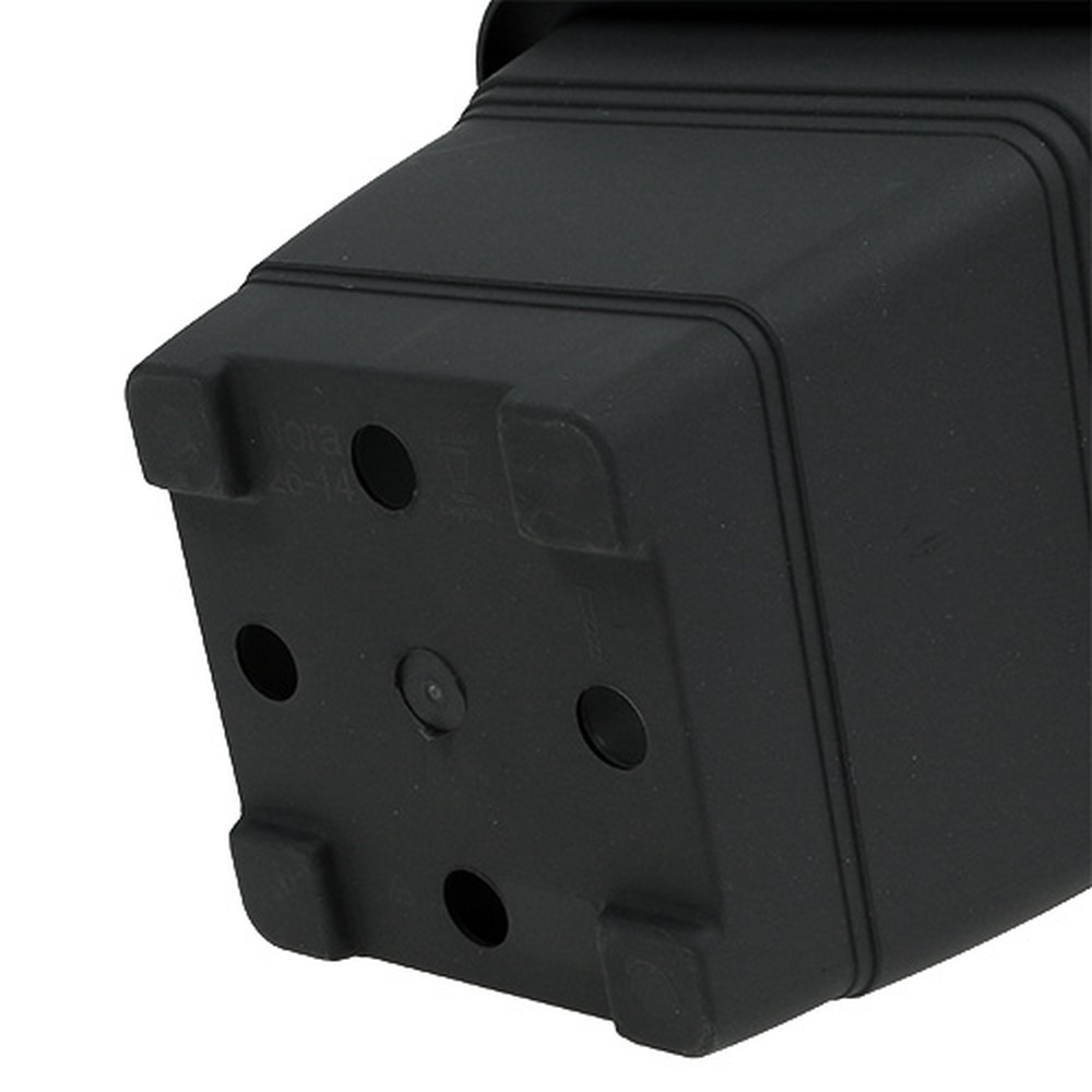 Vinkelformen og den mørkegrå fargen gir plantepotten et trendy utseende, mens de fire føttene på sidene garanterer at den står trygt på underlaget. Hvis du vil plassere planter på balkongen eller terrassen, så utstyr den for eksempel med et lite ornamentaltre, en frodig azalea eller en liten rosebusk. En buksbom kuttet i form eller en fargerik hortensia er også et utmerket valg for plastgryten.
