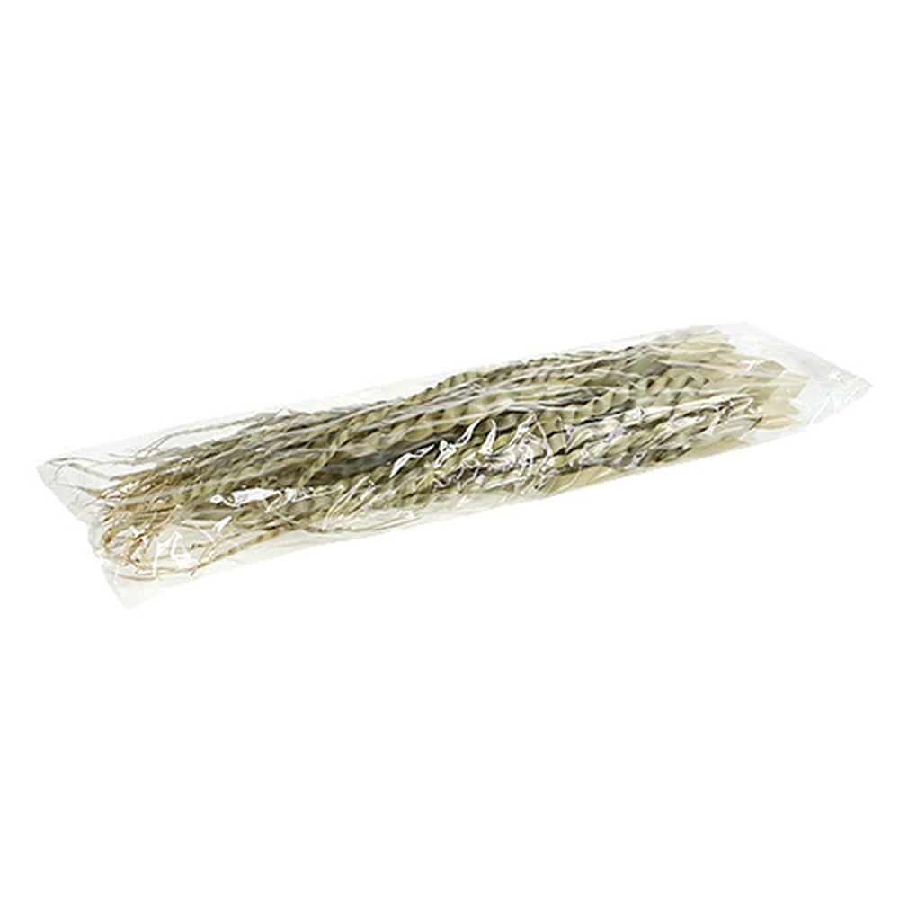 Gullrenden i sin naturlige farge er pakket i en pose med totalt 50 stykker. Hver sokkel er omtrent 50 centimeter stor og er knytt sammen i bunnen slik at flettingen ikke ruller ut og er litt under spenning.