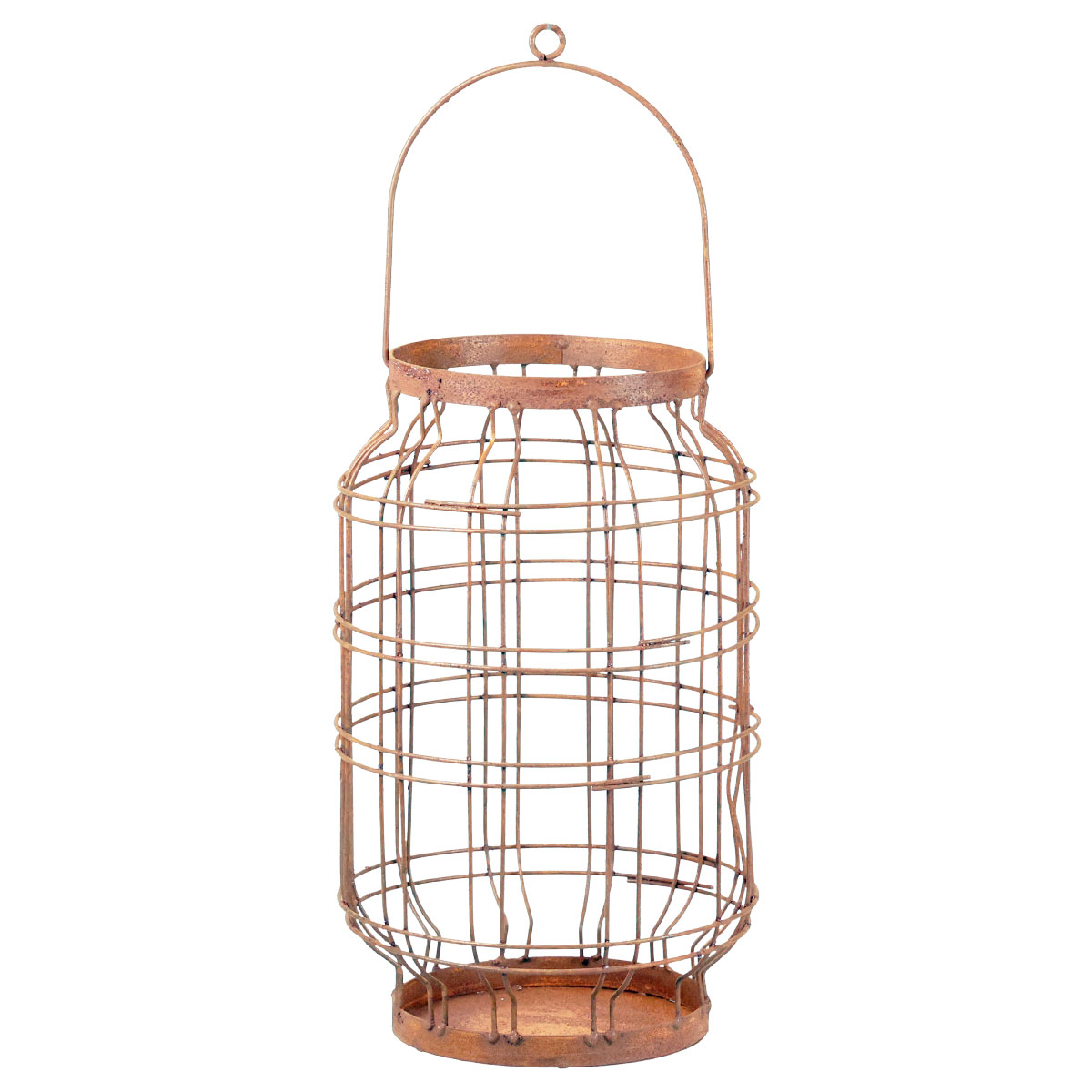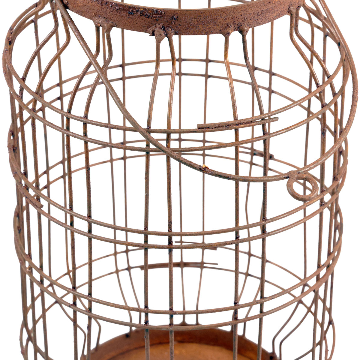 Formen minner om et fuglebur uten tak. Den åpne dekorative lykten har et bevegelig håndtak som du kan bære metalldekorasjonen med.