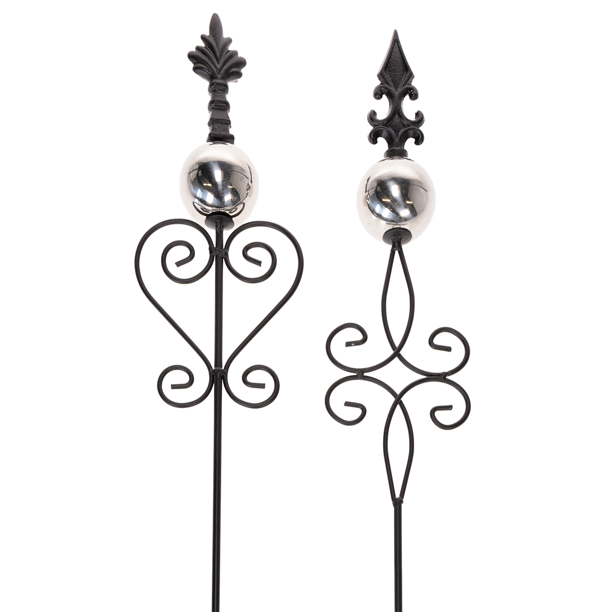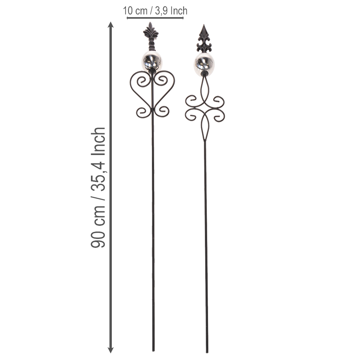 Produktnavn: Hagepike med utsmykket design, dekorativ form og stilig metallkule, 90 cm, 2 stk.