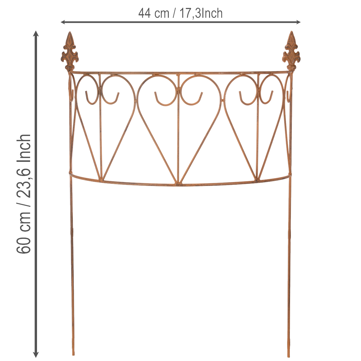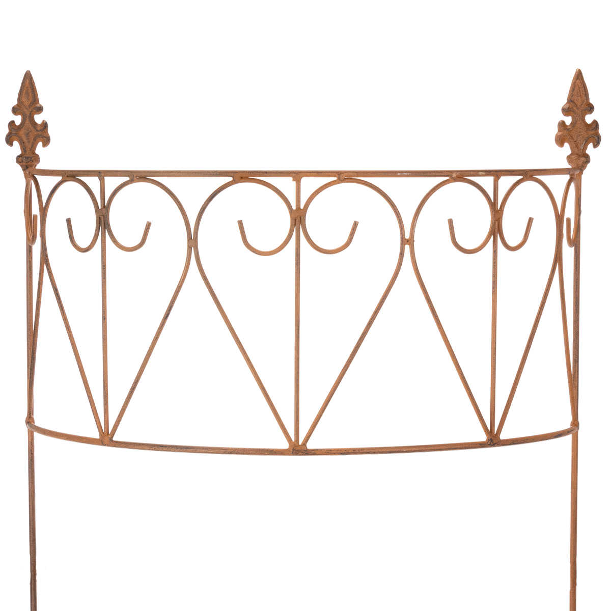 Elsker du å designe hagen din kreativt? Med dette metallespalieret til blomsterbedene dine legger du ikke bare til dekorative detaljer, men støtter også veksten av plantene dine. Det elegante designet på hagepinnen i varm brun harmonerer perfekt med enhver hagestil, mens det værbestandige materialet lover langvarig glede. Enten den brukes som et stilig espalier eller et elegant dekorativt element, gir denne metallhagepinnen funksjonalitet og estetikk til blomsterbedet ditt. Med en høyde på 60 centimeter gir den optimal støtte for klatreplanter som roser, klematis eller søte erter, og kan skryte av en sjarmerende, værbitt rustfinish.