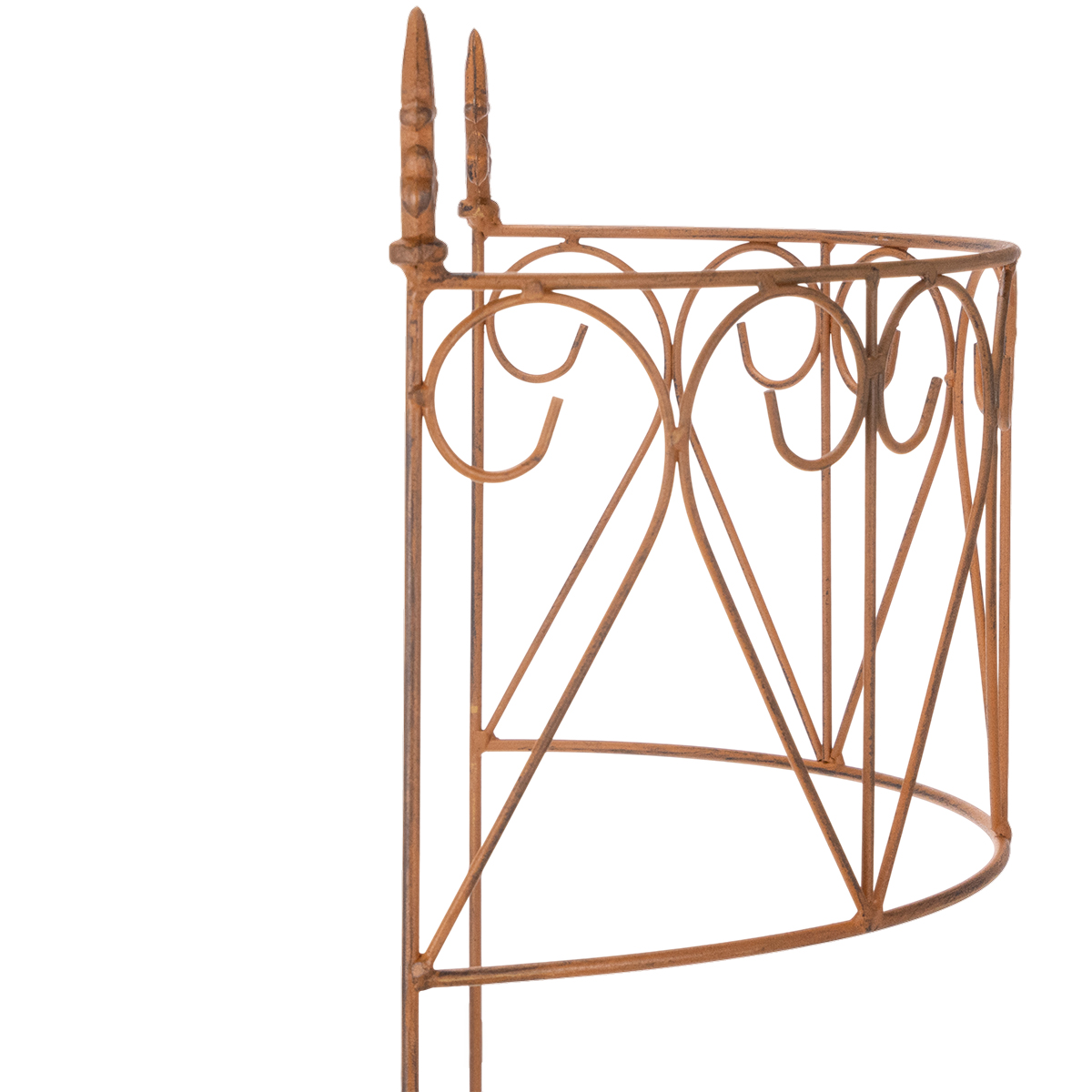 Dette hageespalieret i metall imponerer med sitt harmoniske, lekne design og høykvalitets håndverk. Takket være den varme, brune, værbitte rustfargede finishen blir det raskt et iøynefallende element i enhver hage. Ideelt egnet for klatreplanter, gir det ikke bare støtte, men bringer også struktur og orden til blomsterbedet ditt. Planter som eføy, nasturtium eller klatreroser finner sikker støtte på de robuste metallstagene og trives optimalt.
