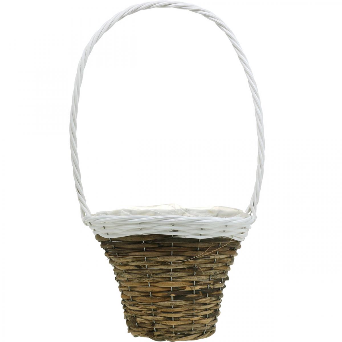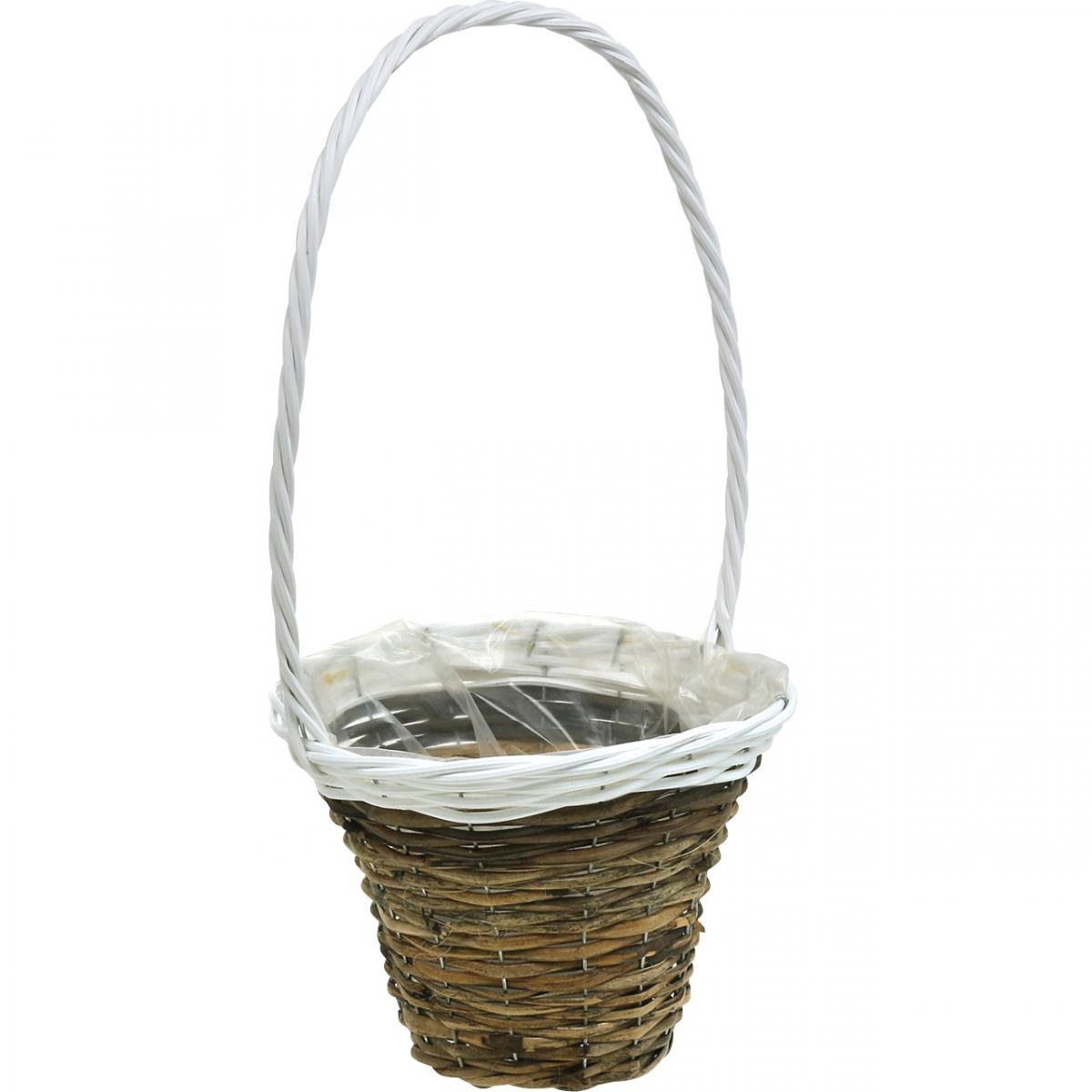 Håndtakskurv, naturlig kurv for planting, blomsterkurv rund natur, hvit H49cm Ø23,5cm
