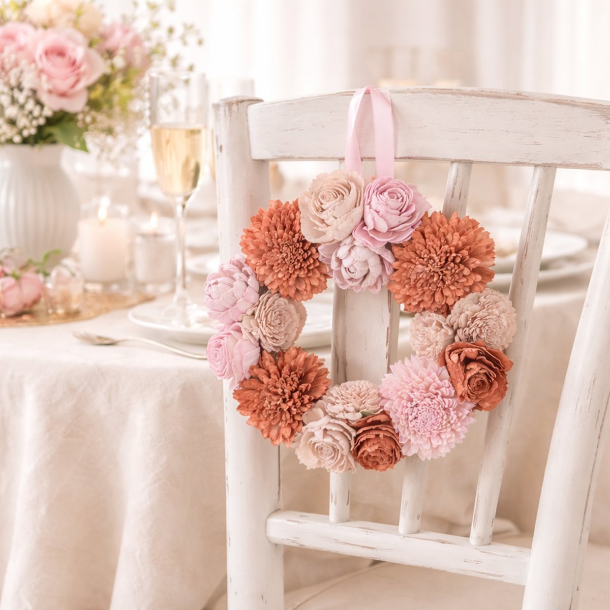 Denne blomsterkransen fengsler ved første øyekast med sin harmoniske fargekombinasjon i delikat rosa. De fine blomstene, nøye laget av høykvalitets sola-tre, formidler en realistisk, men likevel unik sjarm som vil gi varig glede. Hengende blomsterkranser som denne er ikke bare perfekte som dekorasjon på stueveggen, men også som borddekorasjoner for spesielle anledninger. Den vil raskt bli et skikkelig blikkfang i bryllupet ditt eller en vårbrunsj.