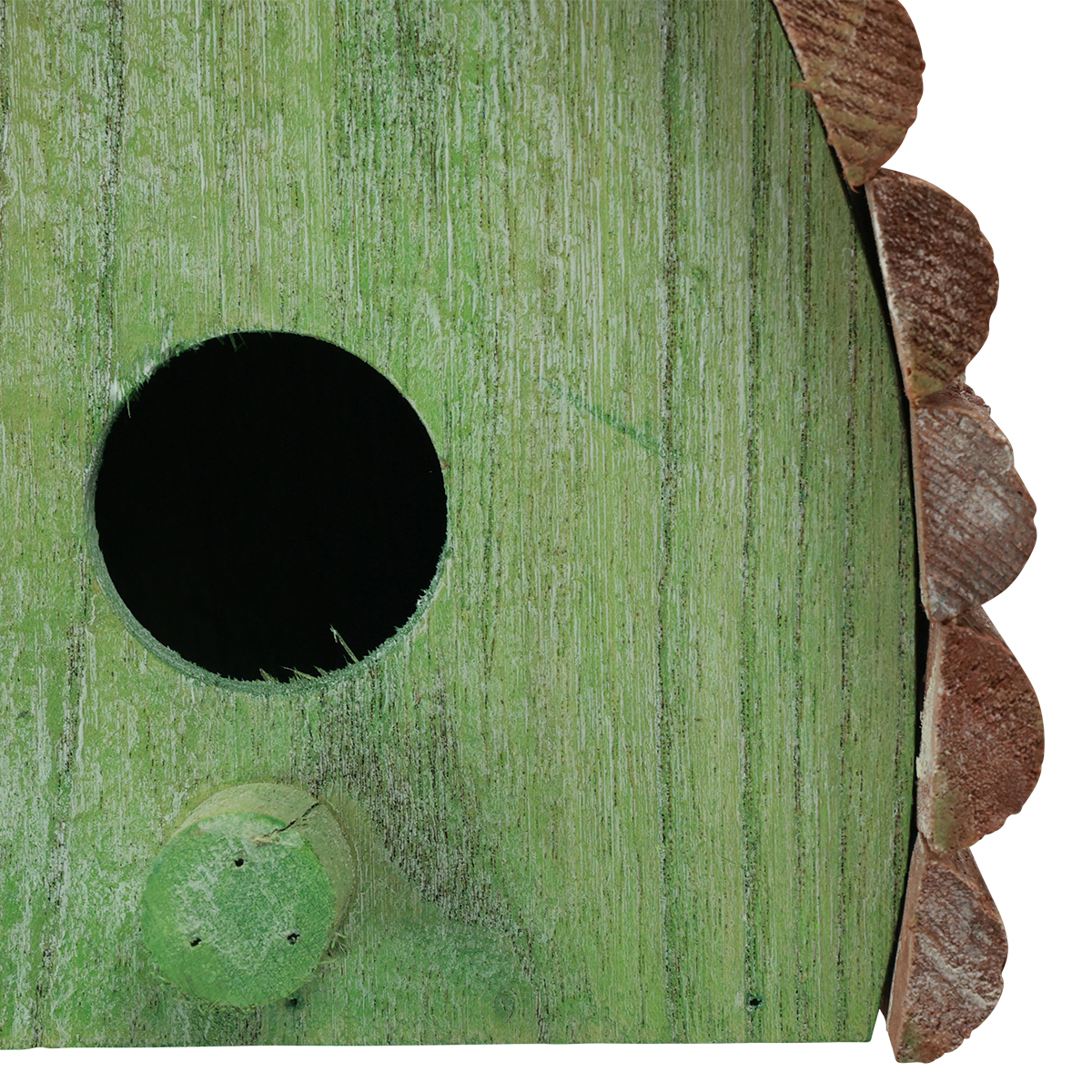 Hengende dekor fuglehus med rundt tak tre grønn brun 16,5×10×17cm