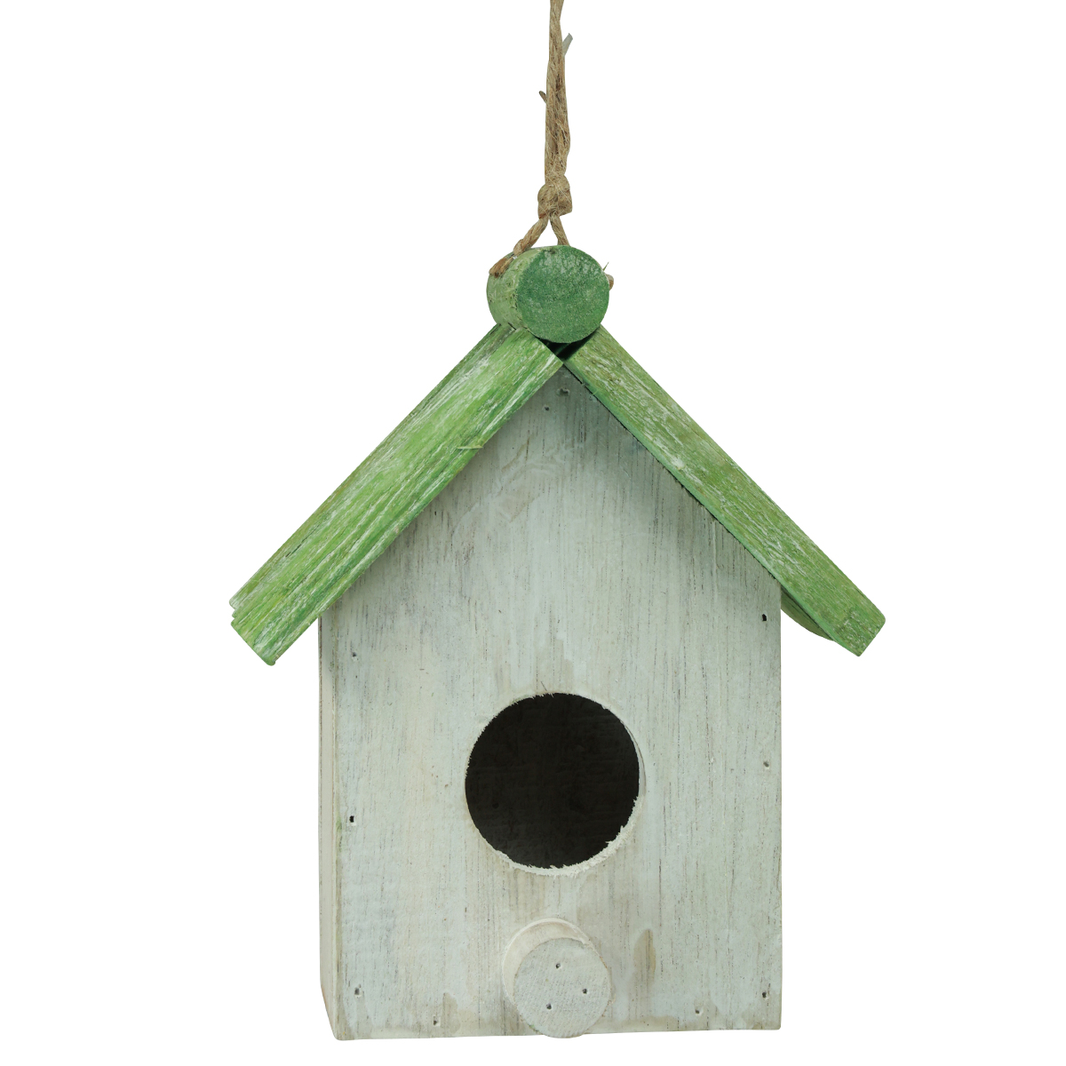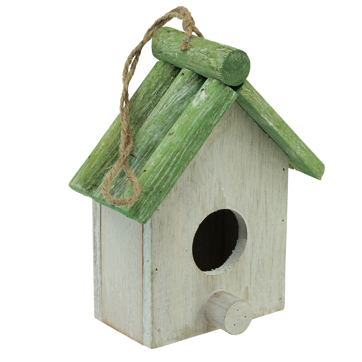Produktnavn: Hengende dekor fuglehus tre grønn hvit 14,5×7,5×17,5cm