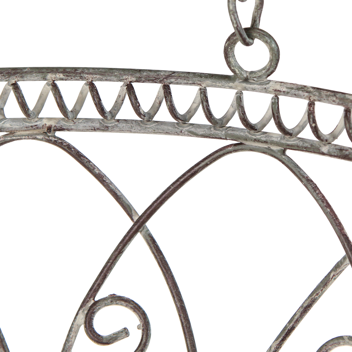 Den dekorative metallkurven passer sømløst inn i ethvert interiør og trollbinder med sin rustikke sjarm. Takket være nøye utførelse og detaljerte dekorasjoner har den hengende kurven i vintage-stil en antikk karakter som vekker oppmerksomhet. Enten du forskjønner innvendige rom, forbedrer en hage eller designer inngangen til et hus - vår hengende metallkurv er allsidig og viser perfekt frem både ferske og tørkede blomsteroppsatser.