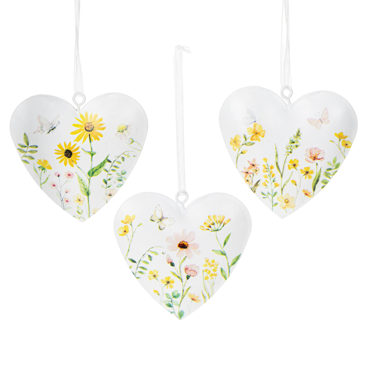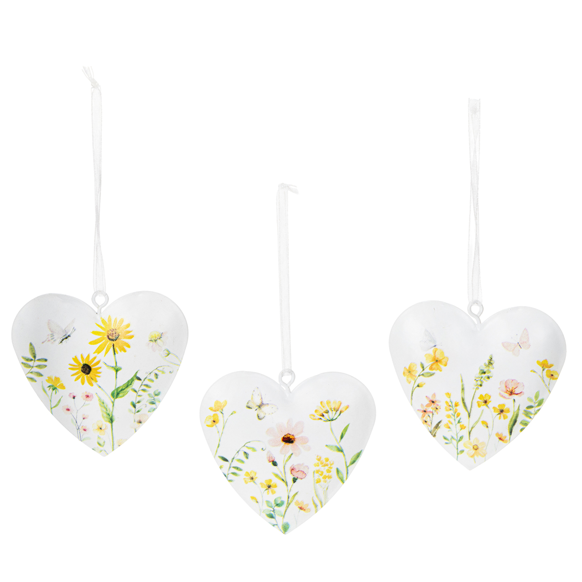 Hjerteanheng med blomstermønstre som veggdekorasjon, 7 cm, 6 stk.