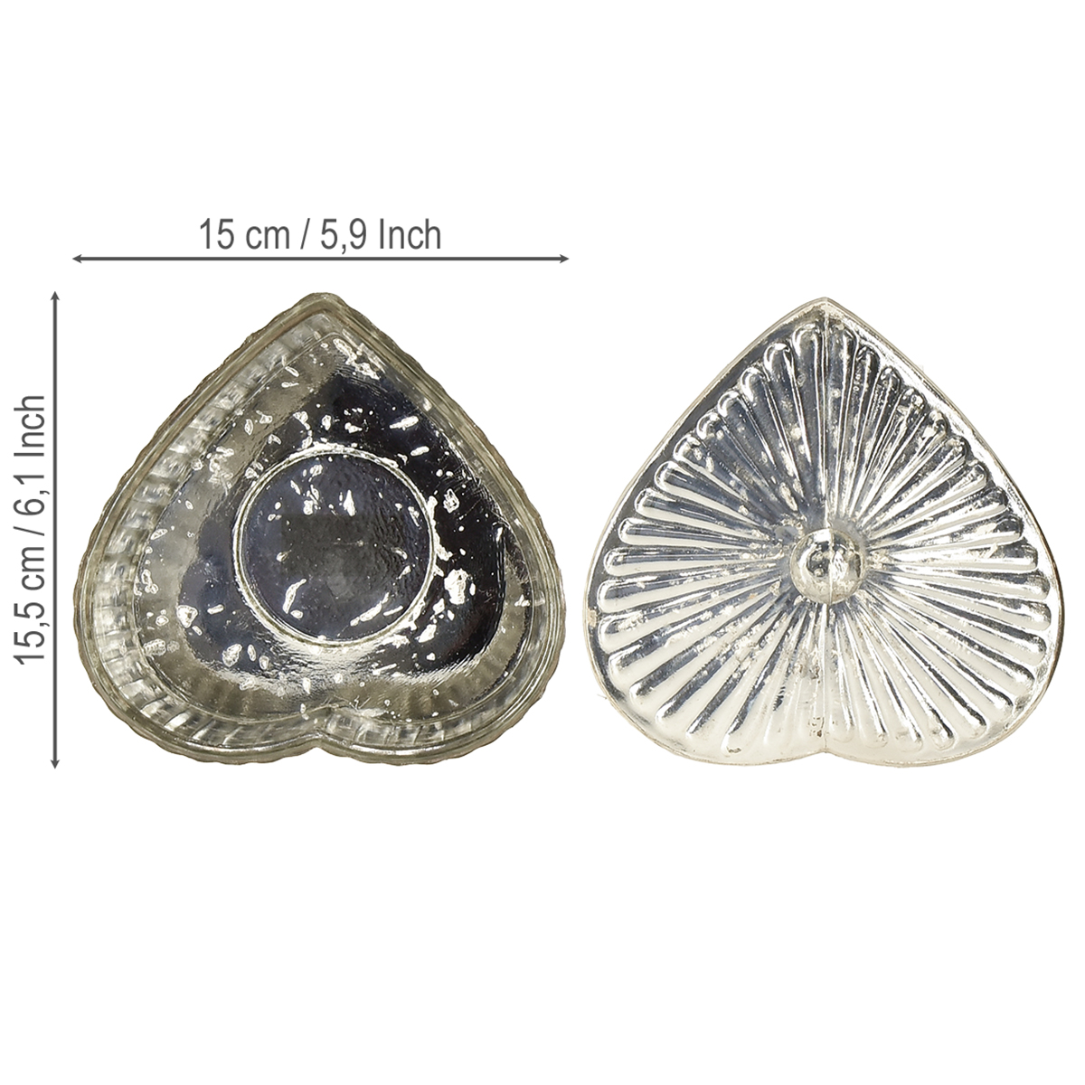 Hjerteformet boks med lokk, glassboks med hjerte, champagne, 15,5 x 15 x 10 cm