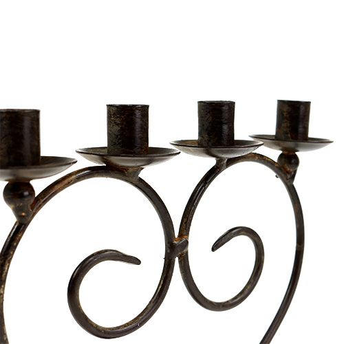 Den hjerteformede og brune lysestaken er rundt 17 centimeter høy og 16 centimeter bred. Fotavtrykket har en diameter på omtrent 8 centimeter. Kandelaberen er laget helt av metall og ser kunstig eldre ut på grunn av bruken av forskjellige brune nyanser, noe som skaper et sjarmerende retroutseende.