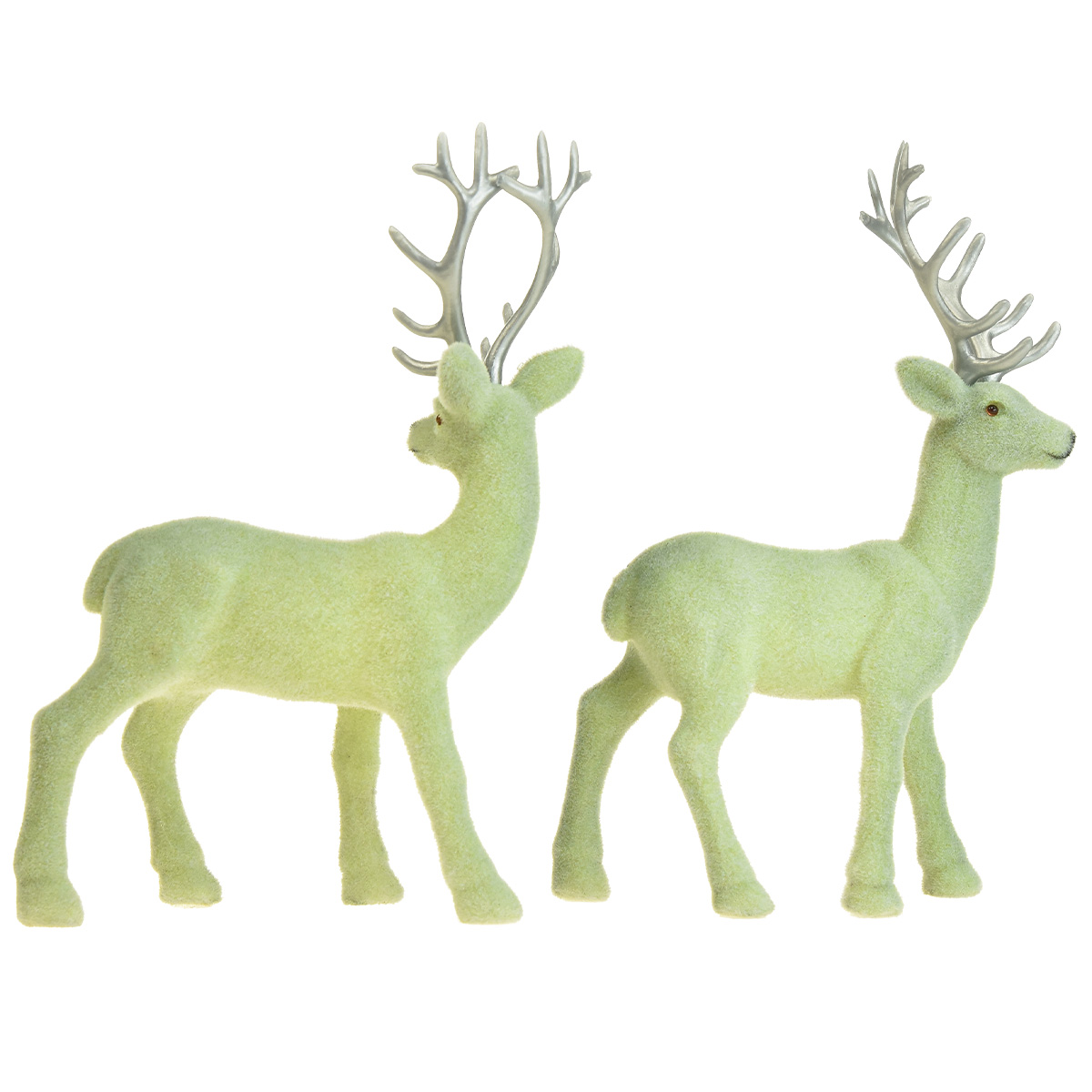 Produktnavn: Hjort dekorativ reinsdyrgrønn grå kalv flokket 20 cm sett med 2