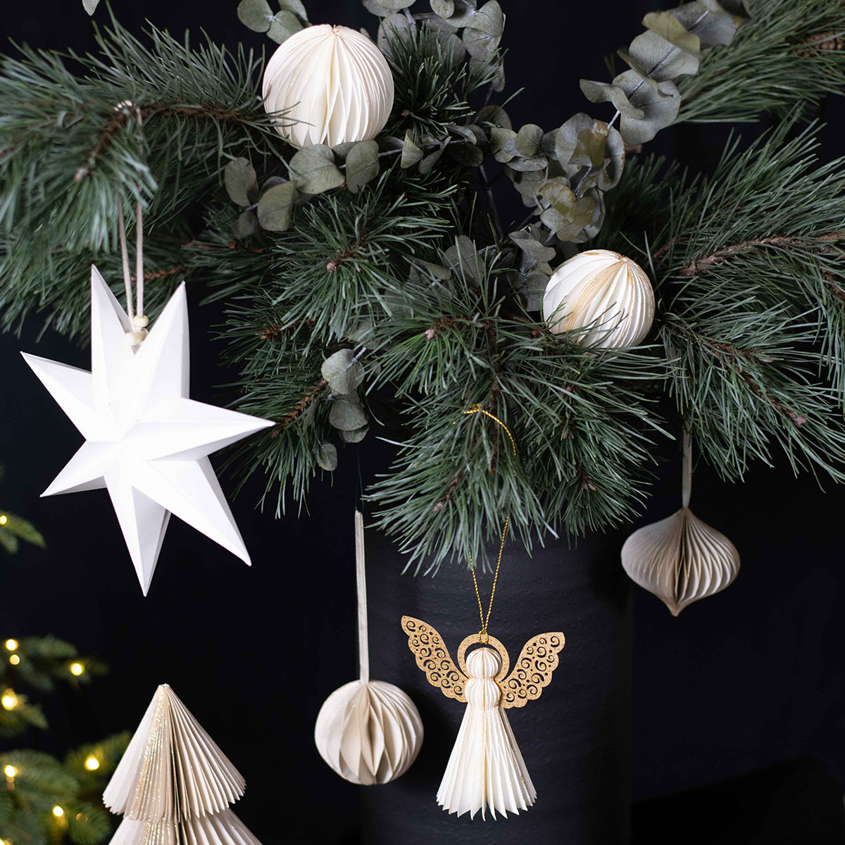 Du kan finne enda flere honeycomb papirdekorasjoner i butikken vår. Bla gjerne gjennom vårt utvalg av juletrepynt og hengende pynt til jul.