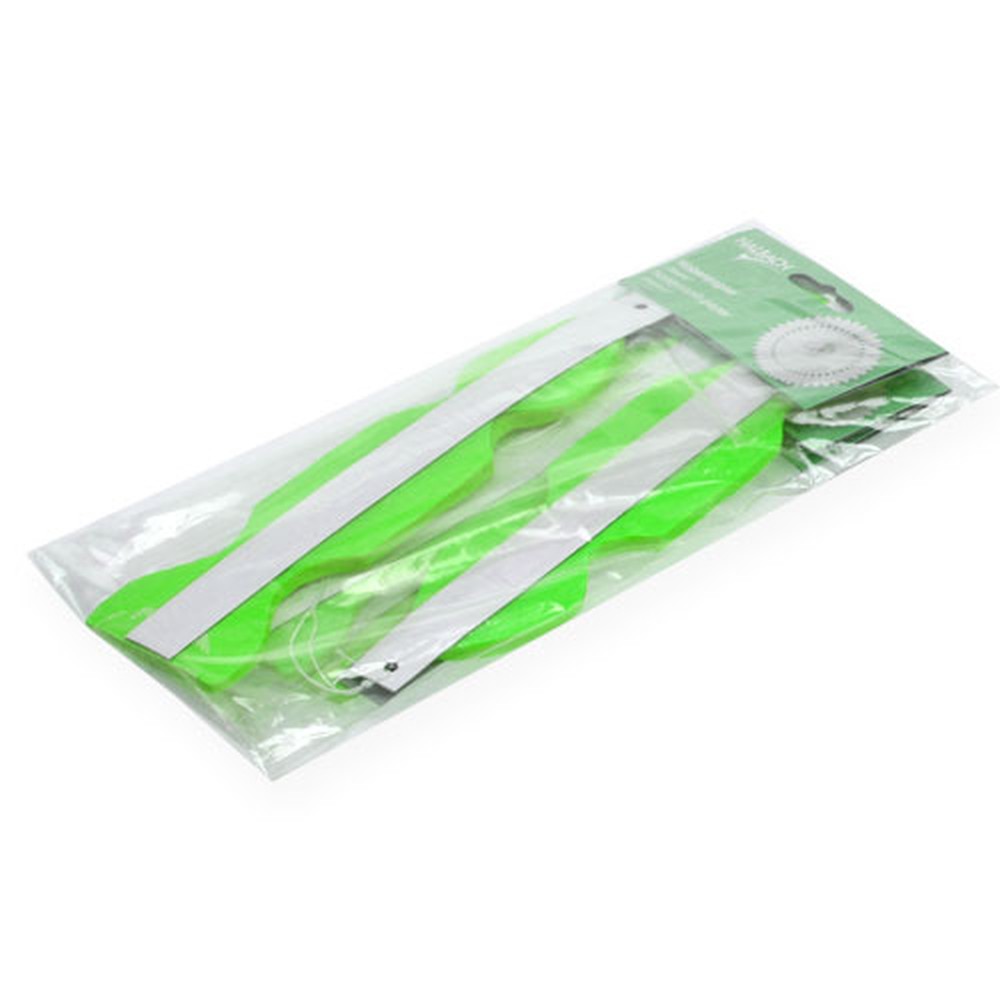 De grønne dekorative blomstene laget av bikakepapir tilbys i et sett på 4, og når de er brettet ut, har de en diameter på ca. 40 centimeter hver, hvor den totale lengden inkludert løkken er ca. 52 centimeter. Når de er brettet, er blomstene omtrent 22 centimeter lange.