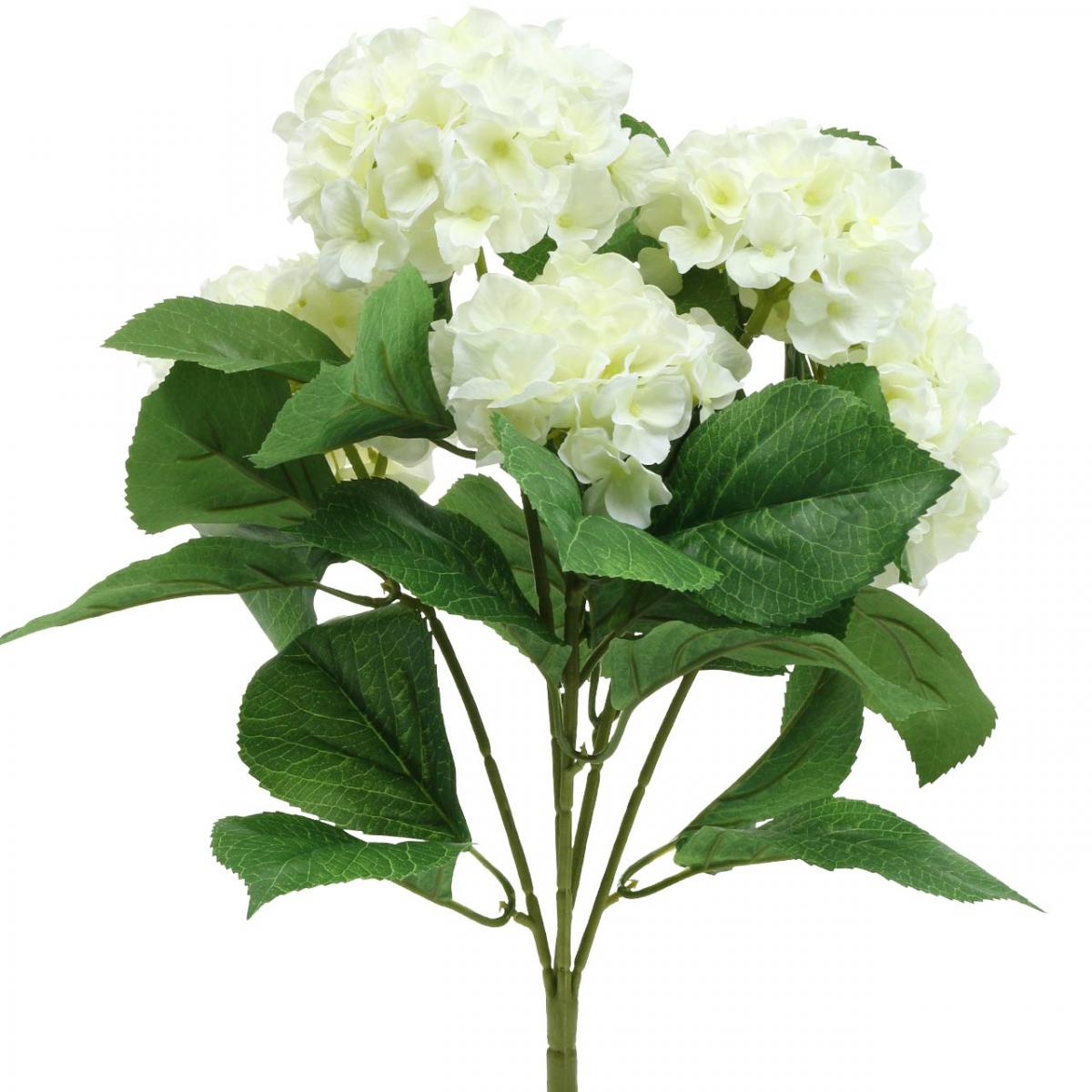 Hortensia kunstig hvit silke blomster bukett sommer dekorasjon 42cm