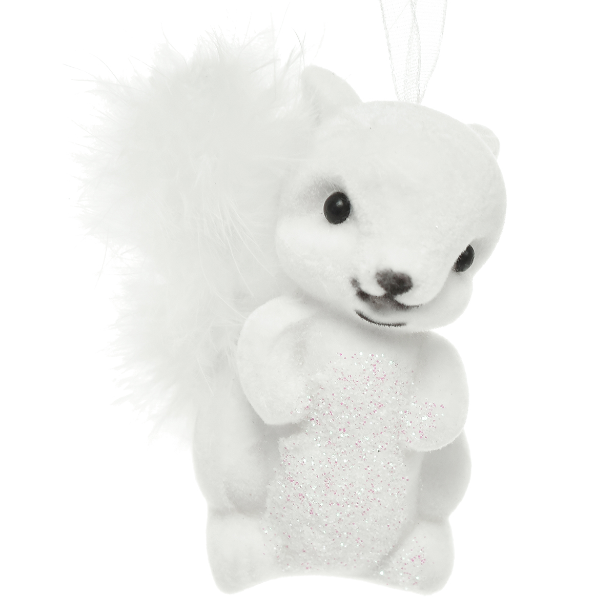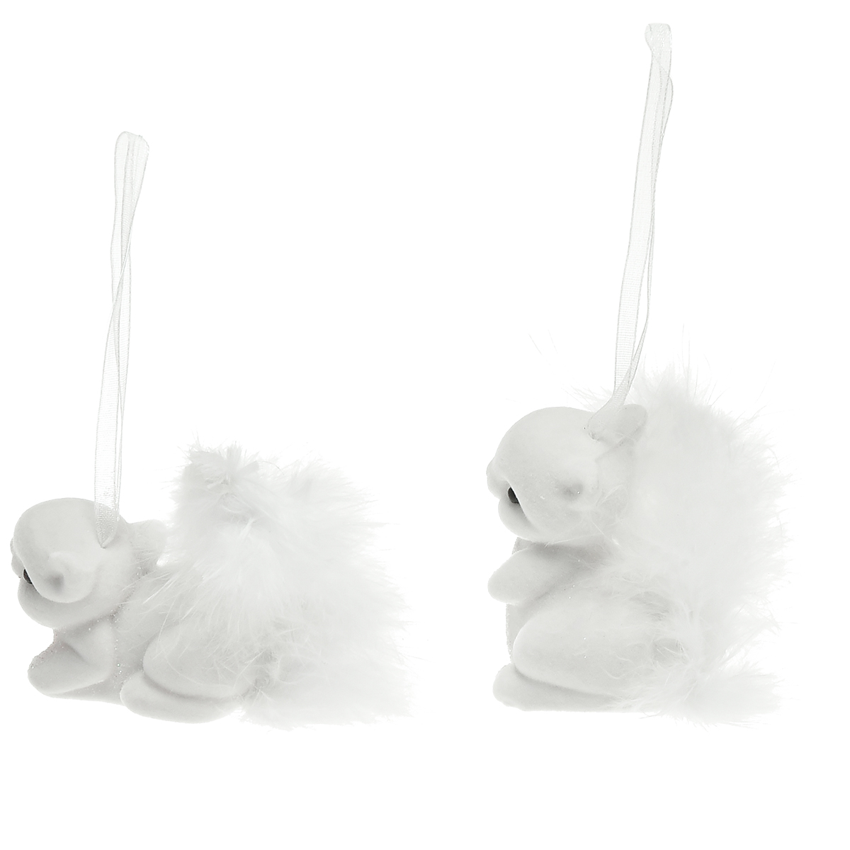 Produktnavn: Hvit ekorn 6 cm sjarm med glitter og fjærdetalj - Perfekt for festlig juletrepynt - pakke med 2
