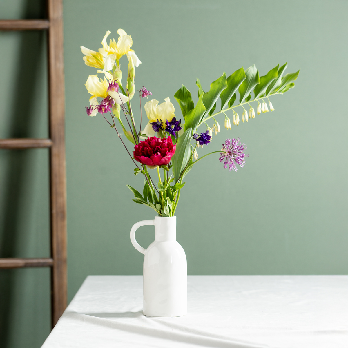 Hvit keramikkvase for tørrdekorasjon, vase med hank, Ø9 cm, H21 cm