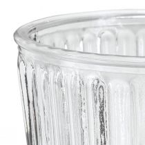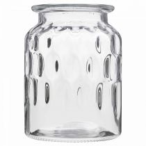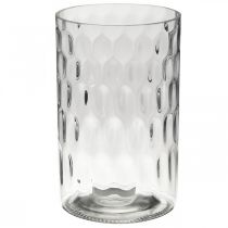 kr 108Denne glasslykten trollbinder med sitt allround-mønster av ovaler, som kaster flotte lysrefleksjoner utover når et stearinlys settes. Det vakre glasskaret kan også brukes som blomstervase. Plasser ganske enkelt en bukett med friske blomster, tørkede blomster eller silkeblomster i den runde glassvasen og glasssylinderen kan tjene som en fantastisk borddekorasjon. Bruk glasslykten året rundt som borddekorasjon eller stående på en skjenk. -...