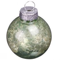 Mini julekuler i glass, grønne, sølvfargede 4 cm, 24 stk.