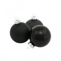 Mini julekuler i glass, svarte, 30 mm, 9 stk.