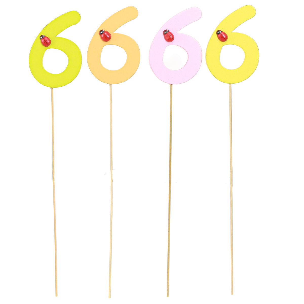 Produktnavn: Jubileumsnummer “6” treplugger fargerike nummerplugger 7cm 16 stk