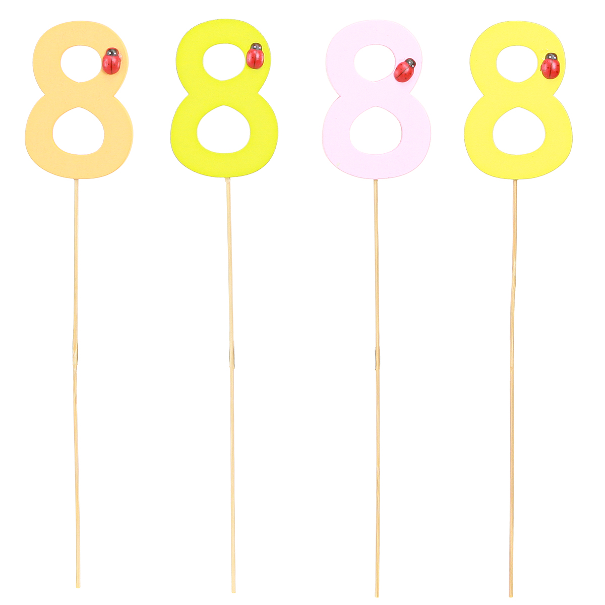 Jubileumsnummer "8" fargerik tallplugg tre 7,5cm 16 stk