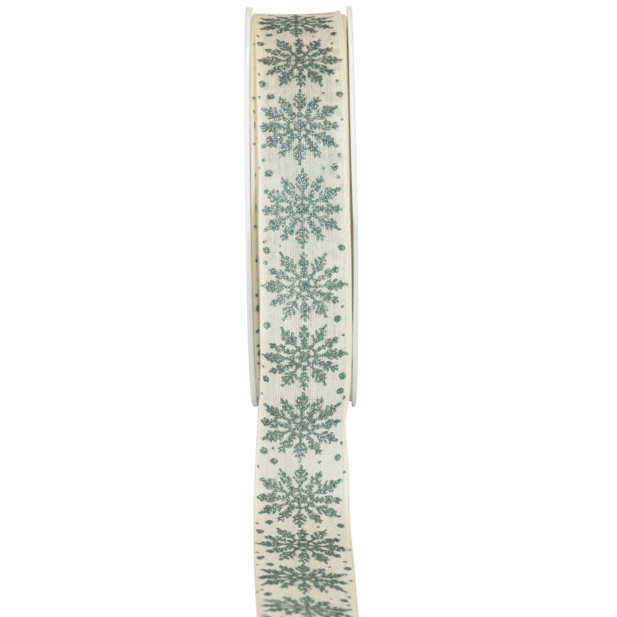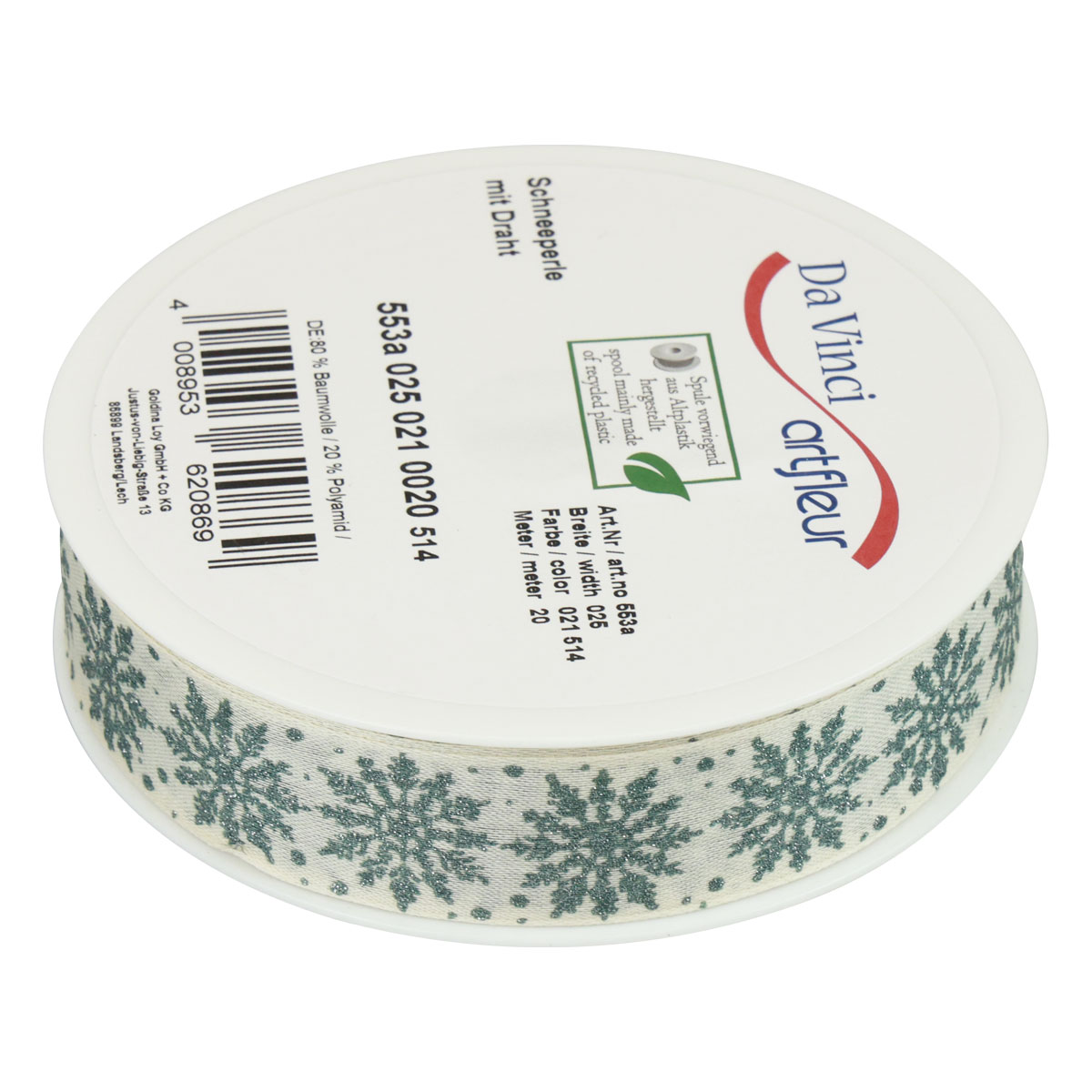 Julebånd med snøfnugg hvit grønn 25mm 20m