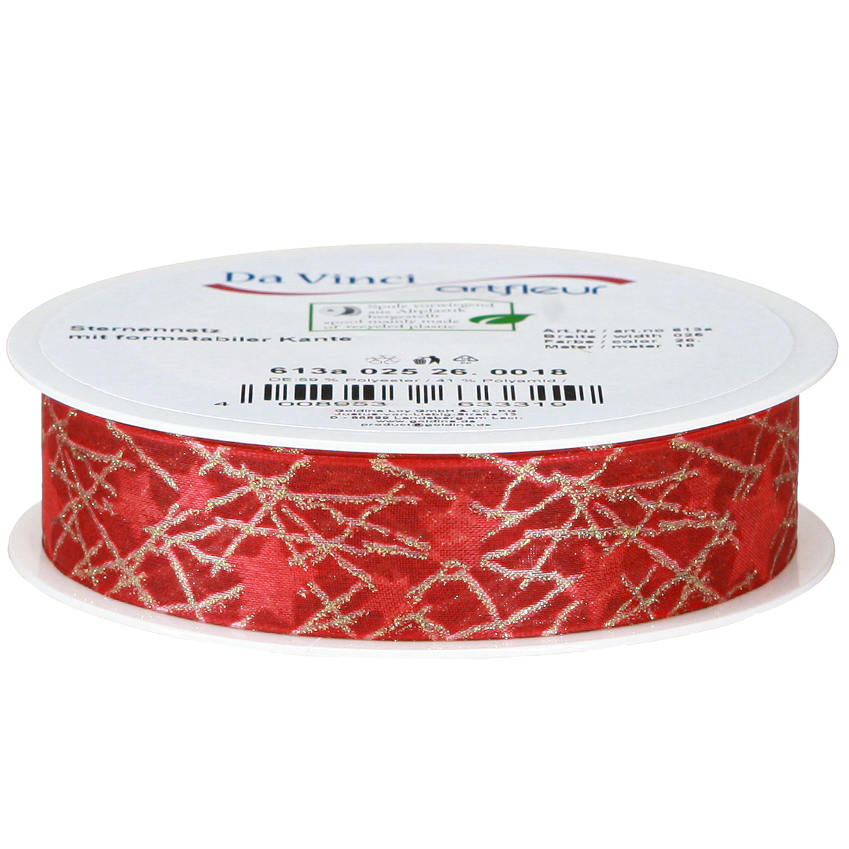 Julebånd med stjerner nett rødt og gull 25mm 18m