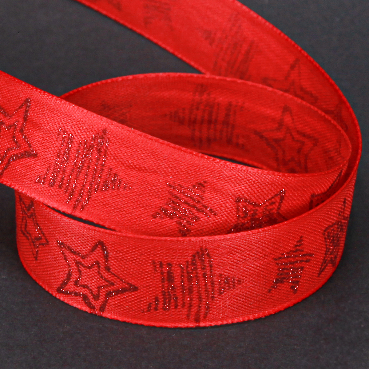Julebånd rødt med glitrende stjerner bånd 25mm 18m