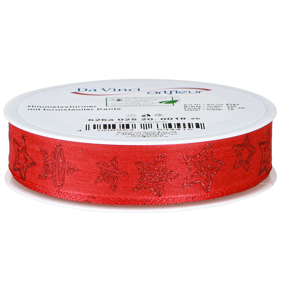 Produktnavn: Julebånd rødt med glitrende stjerner bånd 25mm 18m