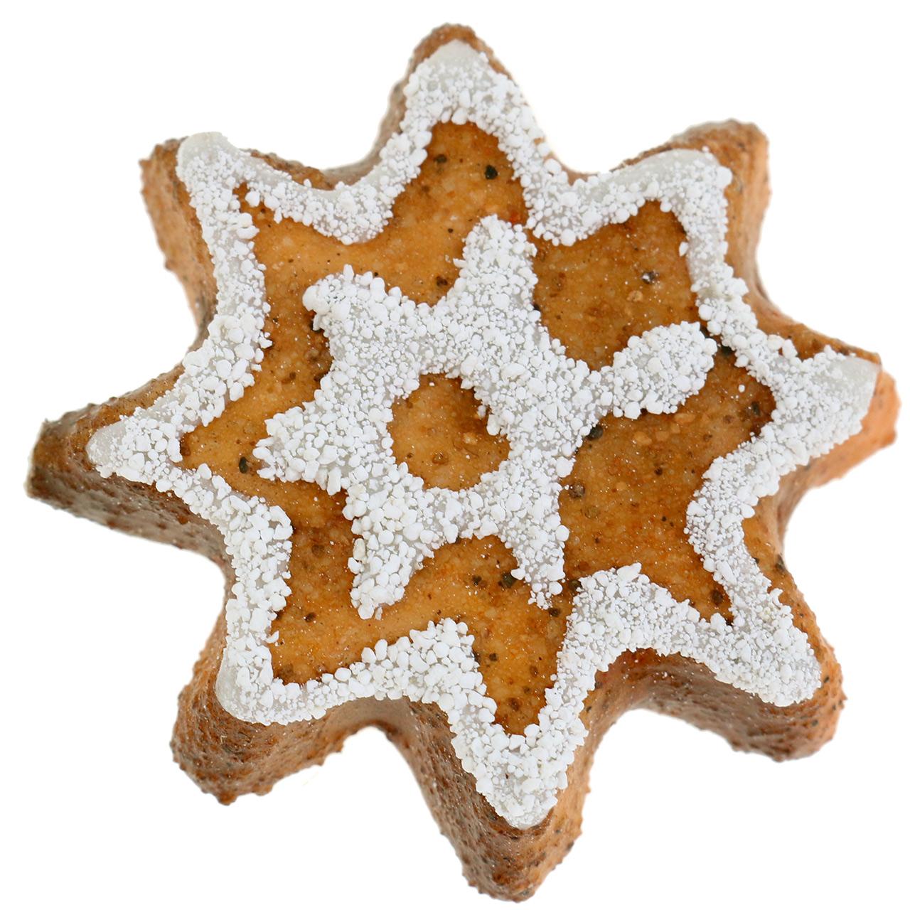 Produktnavn: Julekaker med spredemotiv, stjerneformet, 24 deler, festlige borddekorasjonskaker i stjerneform, melis-look, dekorative stjerner polyresin ca. 6 cm