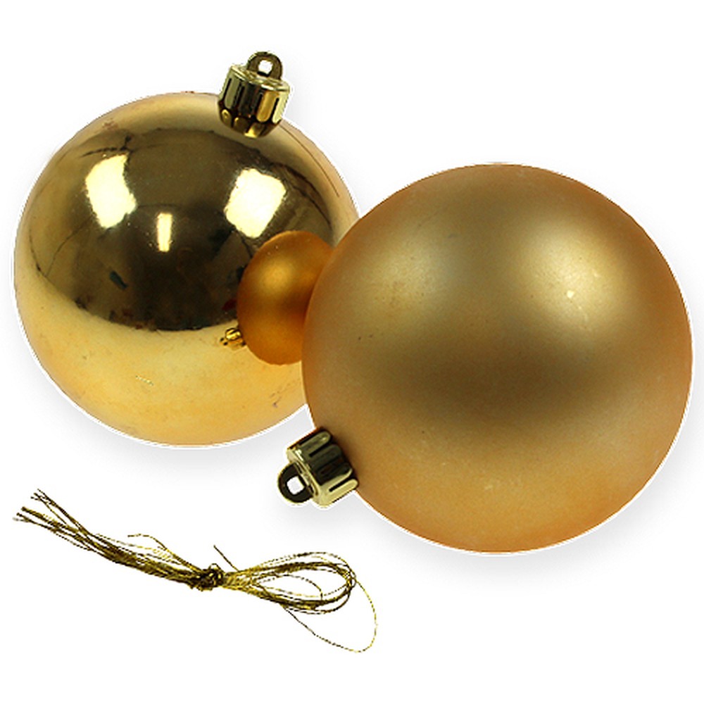 Julekulen i gull leveres i en boks med totalt 4 stykker og med øye har de en lengde på ca 11 centimeter. Selve kulene har en diameter på ca 10 centimeter.