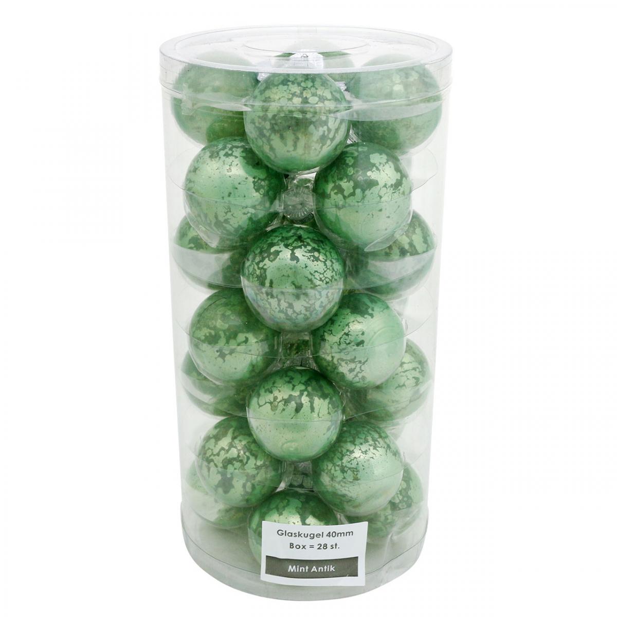 Julekule, trepynt, juletrekule grønn marmorert H4,5cm Ø4cm ekte glass 24 stk.