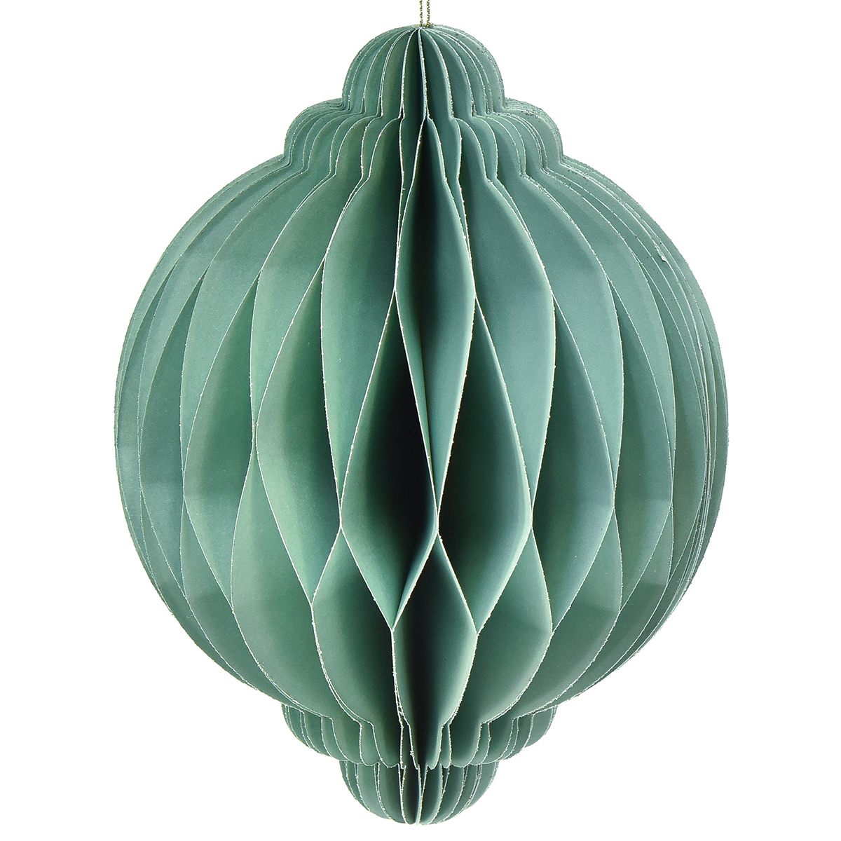 Berik feriedekorasjonene dine med et utsøkt blikkfang: den miljøvennlige julekulen laget av papir i fargen turkis i form av en løk. Laget av FSC-sertifisert papir, gir denne honeycomb-dekorasjonen en varig glans til ethvert miljø.
