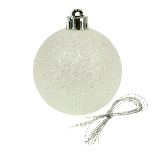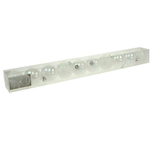 Julekuler plast hvit-perlemor Ø6cm 10st