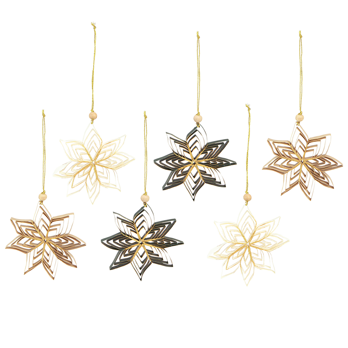 Julepynt av papirstjerne 10 cm hvit brun grønn 6 stk