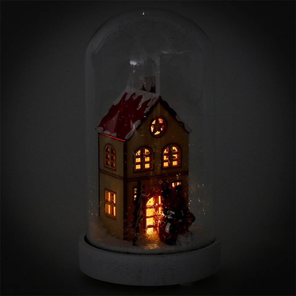 Julepynt hus med glassklokke Ø9cm H16,5cm