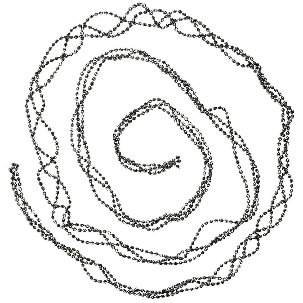Julepynten i form av en grå perlekrans laget av 3 tråder av perler er omtrent 275 centimeter lang. Diameteren på de enkelte perlene er rundt 5 millimeter.