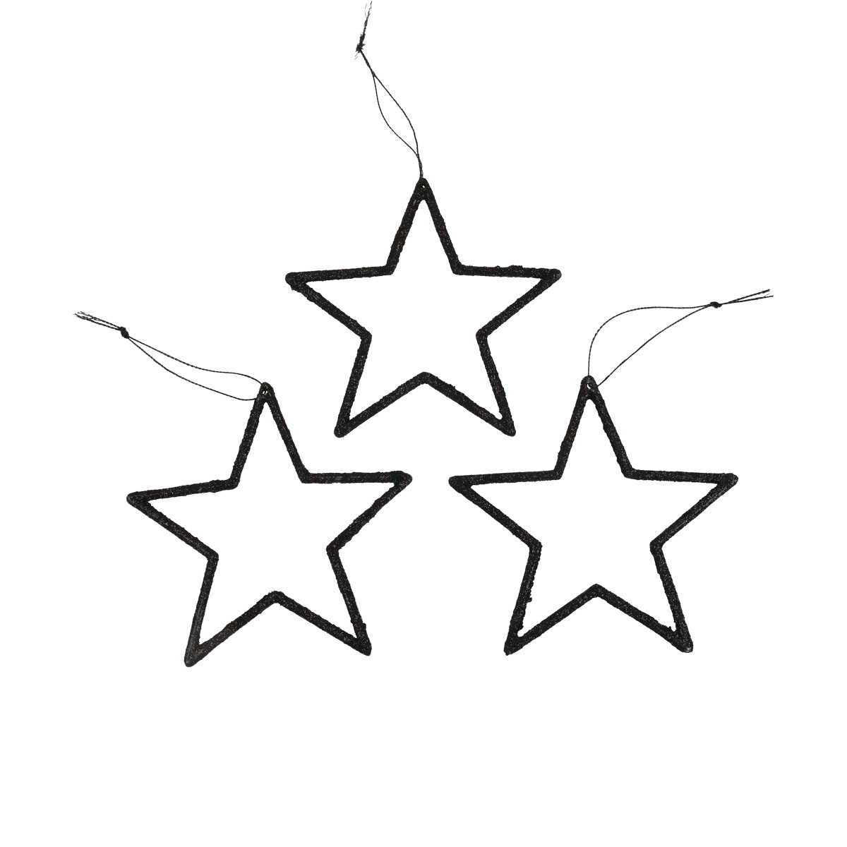 Julepynt stjerneheng svart glitter 12cm 12 stk