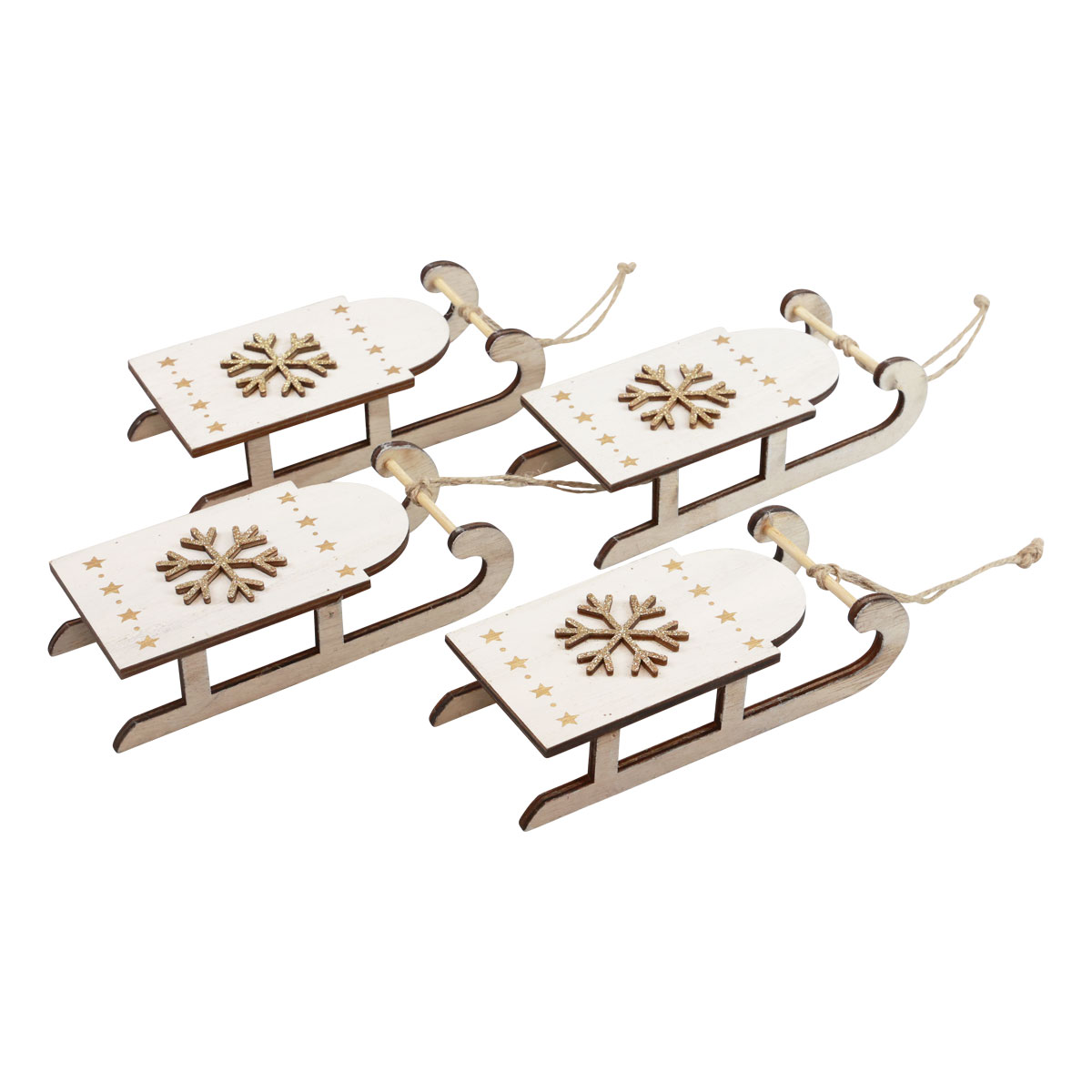 Bruk de dekorative sledene i tre til oppheng eller sett opp julesledene som bordpynt til jul. Det er helt opp til deg.