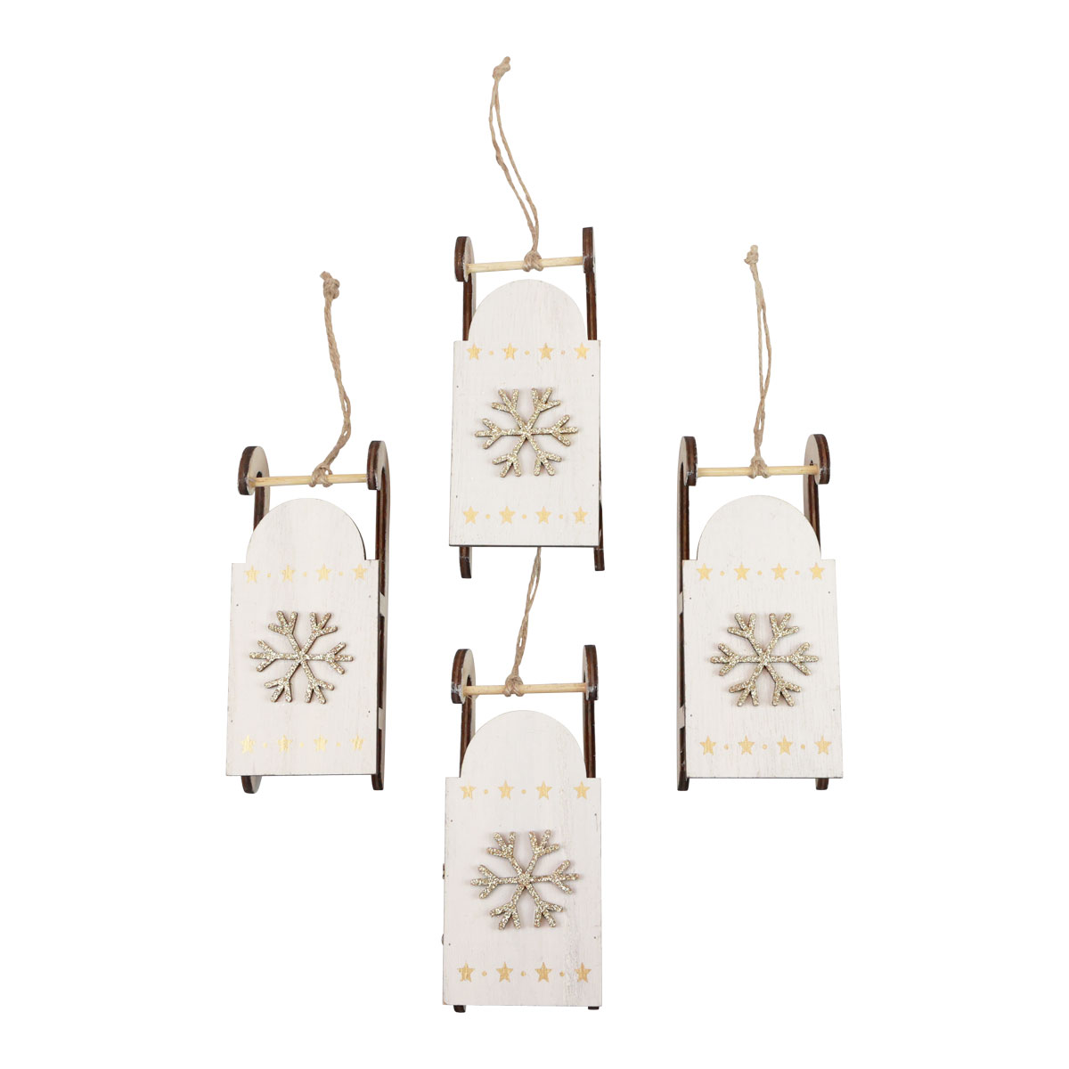 Juleslede ved hvit/gull 15,5x6,5x4cm 4stk