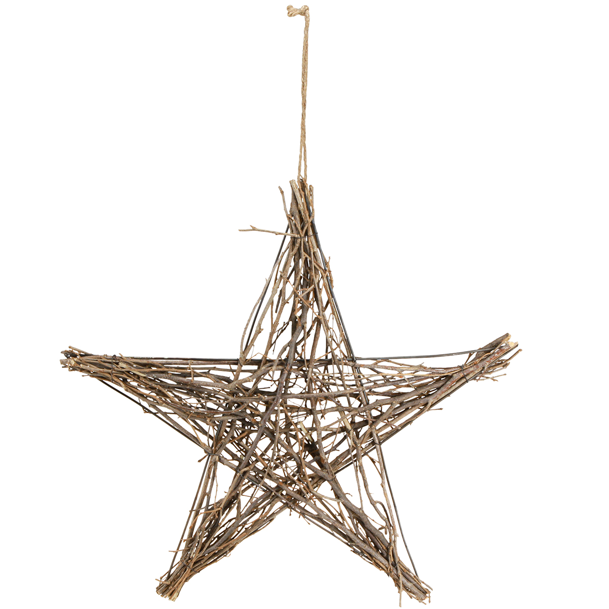 Julestjernen ble laget for å henge med stor oppmerksomhet på detaljer ved å binde de naturlige grenene til en solid metallstruktur. Metallstrukturen til juledekorasjonen forblir nesten usynlig, men gir stjernen stabilitet. Dette betyr at grenene i denne hengende dekorasjonen kan utvikle sitt unike, rustikke utseende uhindret. Dette betyr at julestjernen setter både moderne og klassiske levende aksenter.