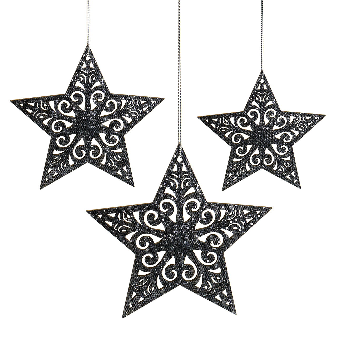 Du vil motta julestjernen med ornamenter i sølvgrå sortert i et praktisk sett med 9 stk. Denne inneholder stjerner i 3 størrelser: ca 8cm, ca 10cm og ca 12cm. 3 eksemplarer av hver variant følger med. En dekorativ snor lar deg henge den sikkert og dekorativt på juletreet.