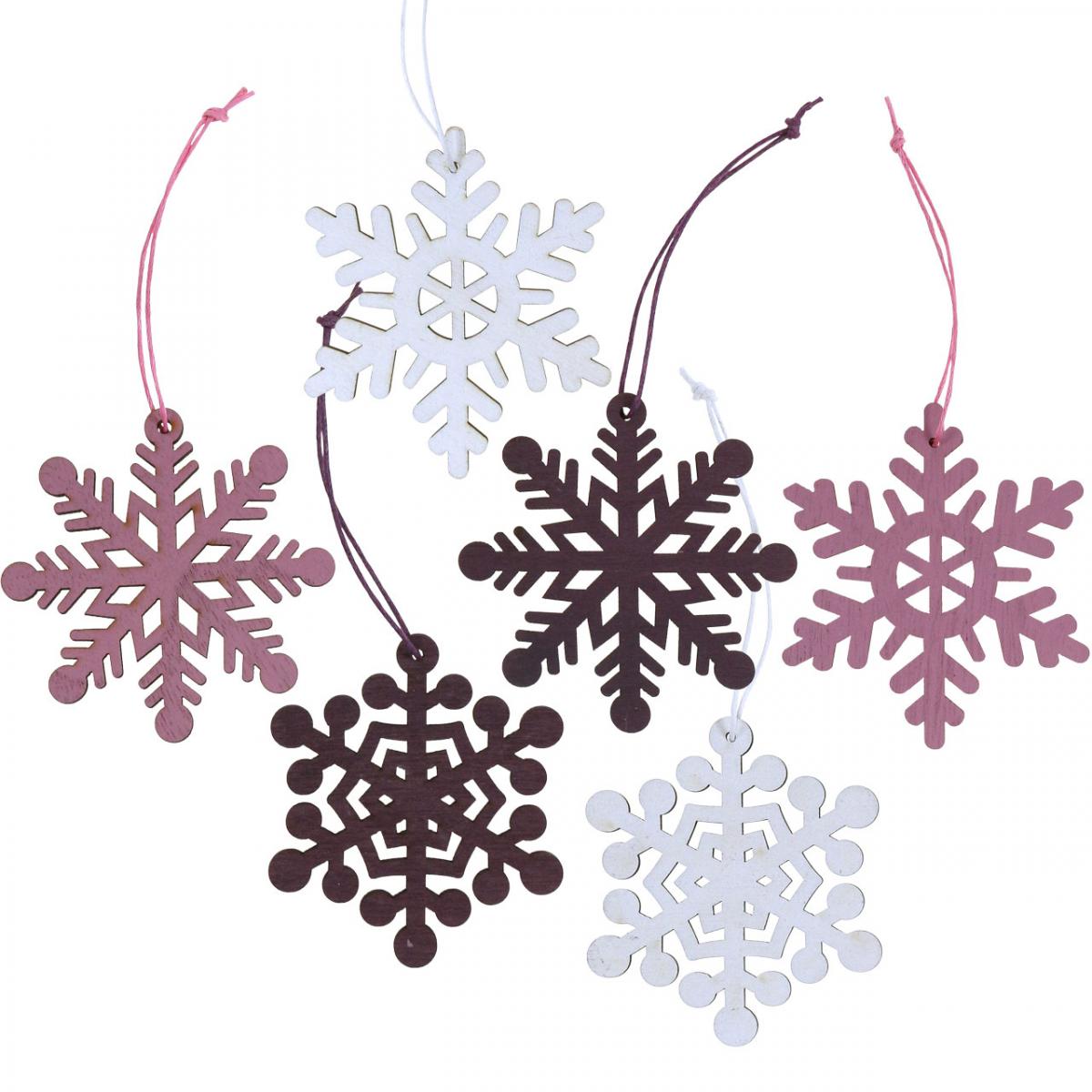 Det sies at ingen snøfnugg er like og her finner du et bredt utvalg. De totalt 36 dekorative snøfnuggene er tilgjengelige i de tre fargene hvit, rosa og lilla, hver med to forskjellige former. De hvite iskrystallene er dekket med en lett fluorescerende plast.