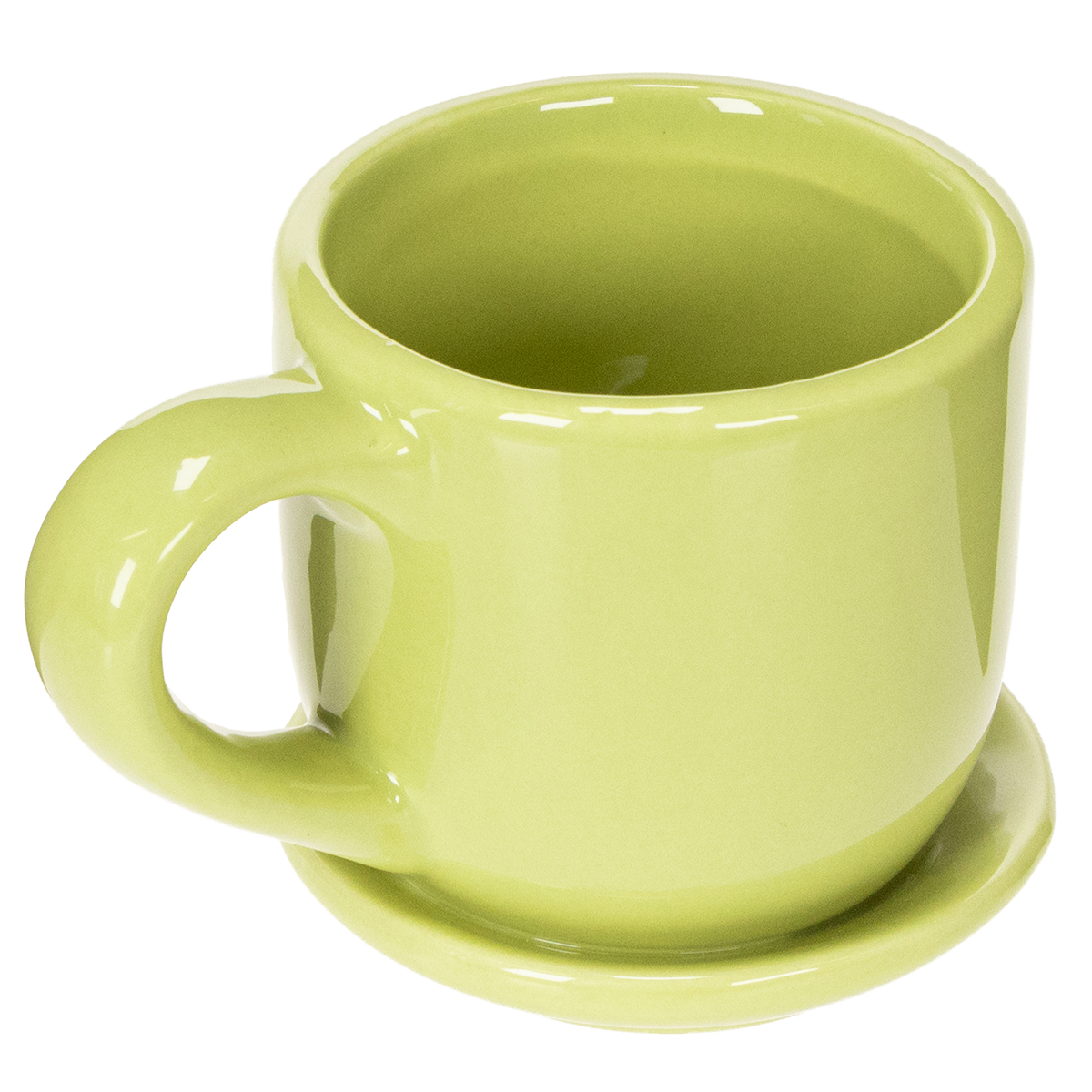 Dette kaffekoppsettet er ikke bare praktisk, men også usedvanlig allsidig. Det livlige gule, grønne og oransje keramiske designet gir harmoniske detaljer uten å være overveldende. Takket være det høykvalitets håndverket føles koppene behagelige å ta på og lover lang levetid. Enten det er til en avslappet frokost i helgen eller som et unikt dekorativt element på spisebordet, er disse kaffekoppene alltid en stilig følgesvenn. Understellet, som er sikkert festet til hver kopp, fanger ikke bare opp drypp, men sikrer også stabilitet. Har du noen gang vurdert å bruke dem som kreative blomsterkasser til små sukkulenter eller urter? Denne ideen gir et personlig preg til ethvert rom.
