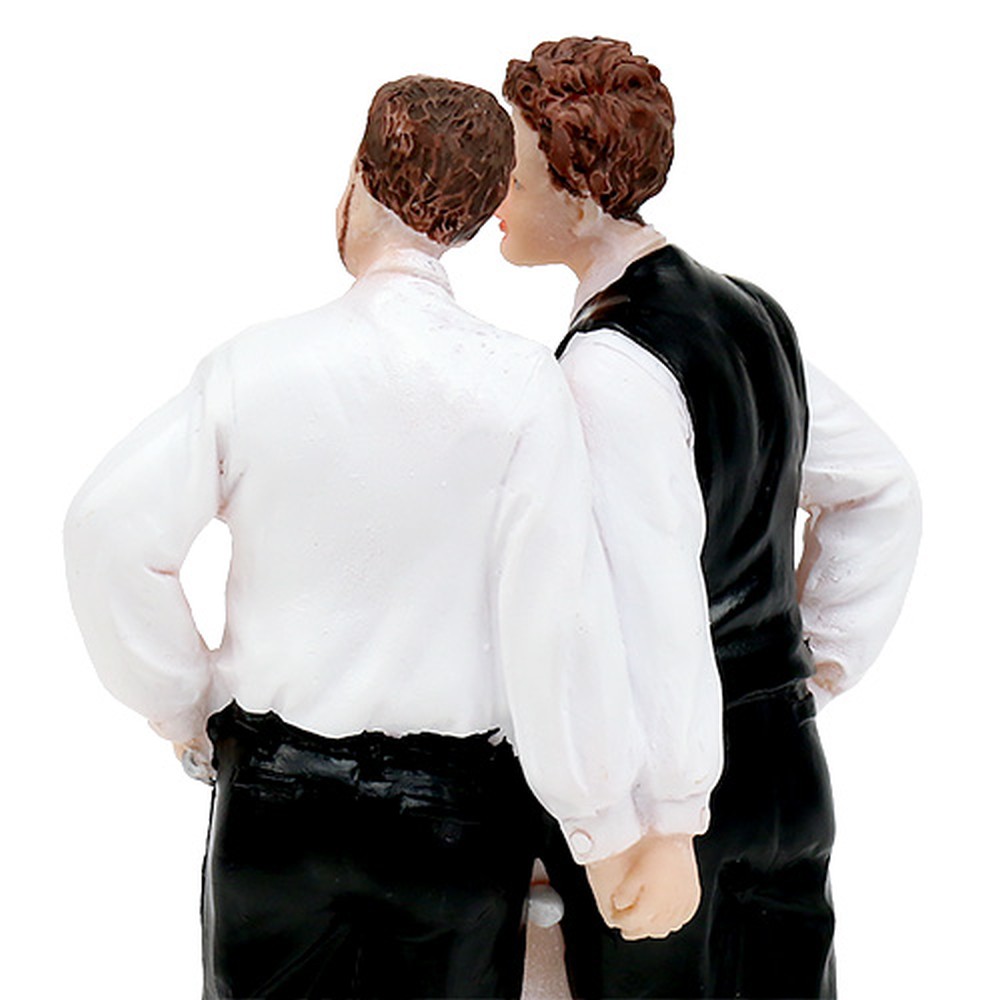 Ikke bare som en kakefigur, men også som en del av borddekorasjonen, vil denne detaljerte modellen sette et smil på alles ansikt: ta hensyn til de mange små detaljene, for eksempel foldene på skjorter og duker eller den fine utformingen av ansiktene og hår av det mannlige bryllupsparet. Eller ta figuren som en del av bryllupsgaven din - bryllupsparet vil sikkert underholdes!