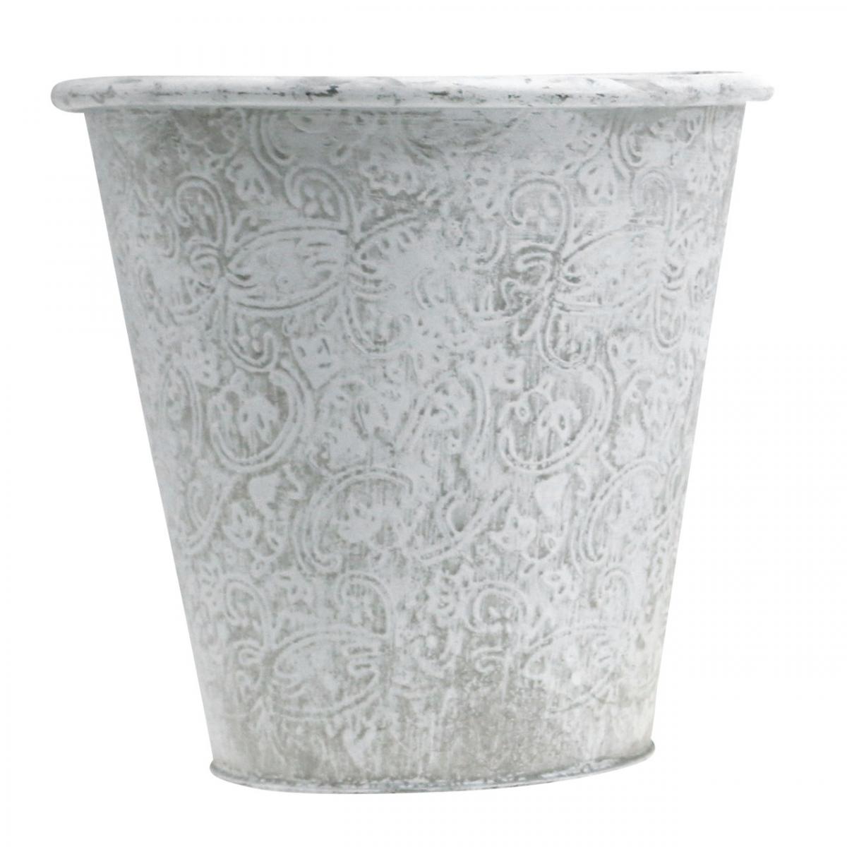 Kar med ornamenter, plantekrukke, metallkrukke hvit Ø18,5...