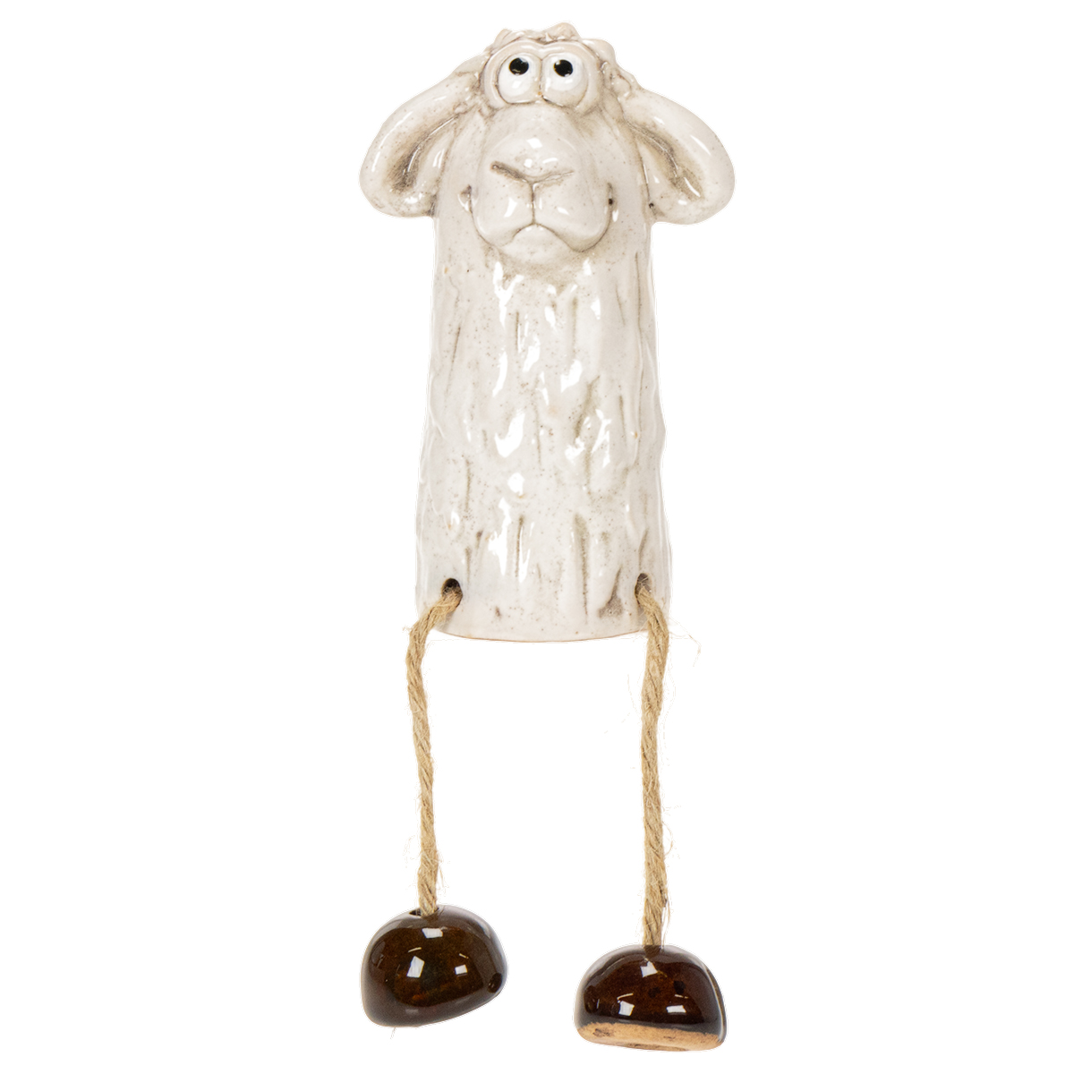 Leter du etter en liten pyntegenstand som bringer sjarm og hygge til rommene dine? Da er denne keramiske sauefiguren akkurat det du trenger! Med sin søte, sittende positur og kjærlig utformede design er den et spesielt blikkfang ikke bare i påsken, men hele året. Enten den er plassert på bordet, i vinduskarmen eller til og med som et høydepunkt på balkongen din – denne figuren vil garantert tiltrekke seg oppmerksomhet. Den varme hvite tonen, kombinert med de dinglende snorbena og de brune føttene, gir den keramiske figuren en leken, men tidløs appell. Perfekt for landlig eller skandinavisk interiør. Vil du skape en magisk kombinasjon? Prøv den med naturlige materialer som tre eller mose som base. La kreativiteten få fritt spillerom!