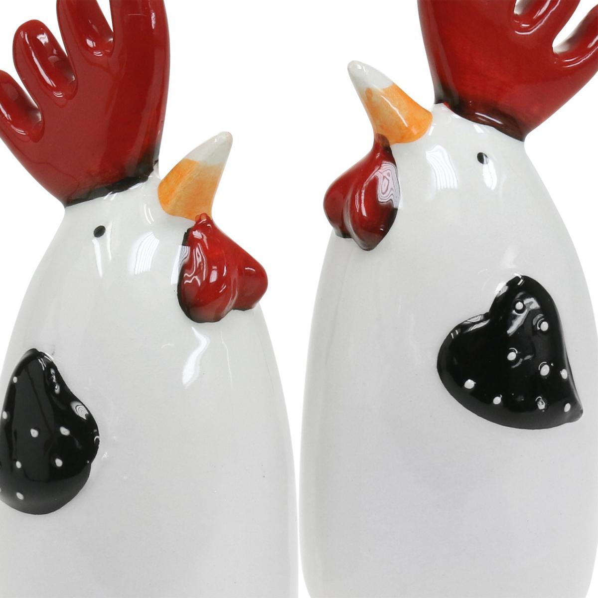 Keramisk Kylling Rød Hvit Hane Bordpynt 7×6×15cm 2 stk